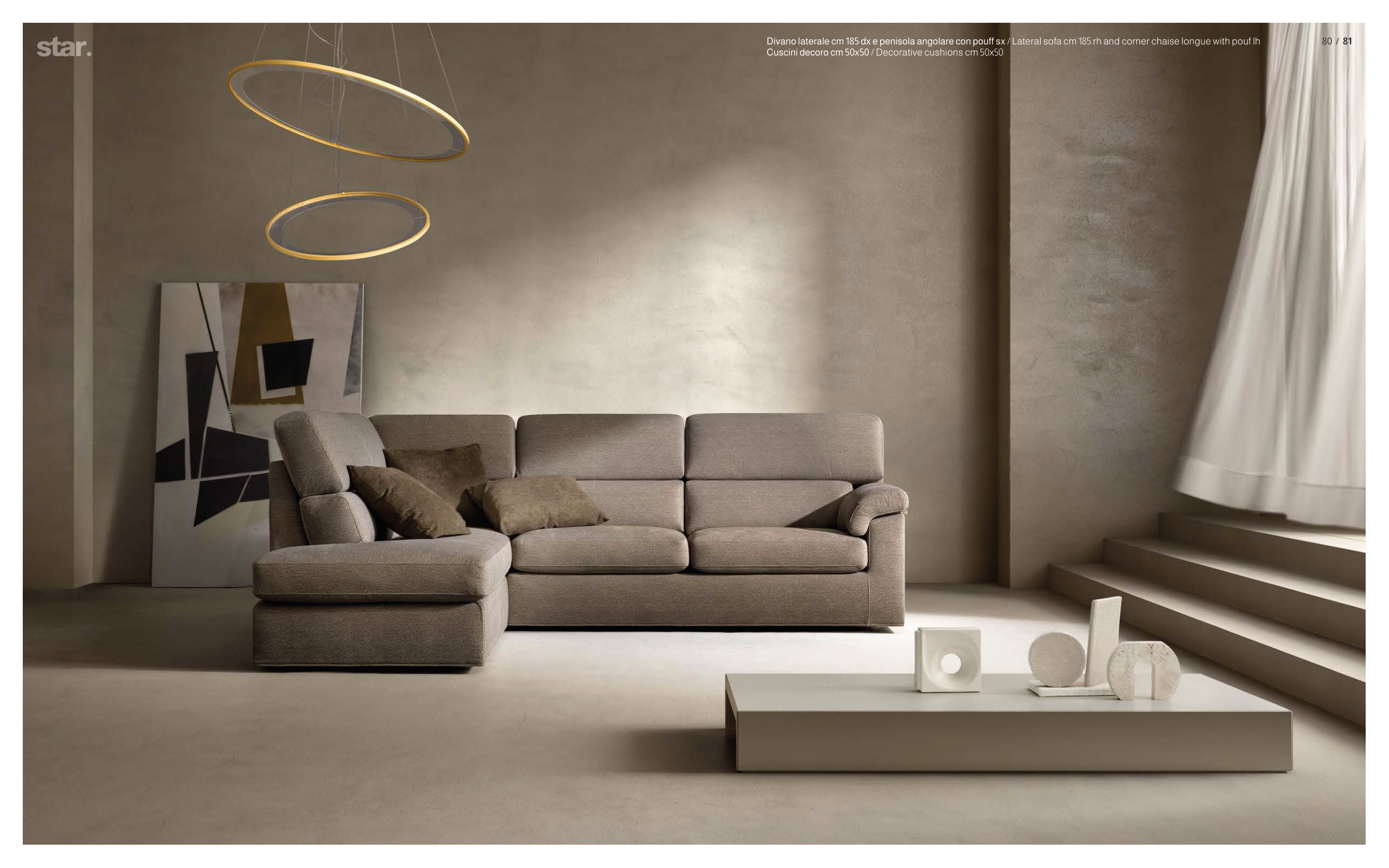 Divano laterale cm 185 dx e penisola angolare con pouff sx / Lateral sofa cm 185 rh and corner chaise longue with pouf lh