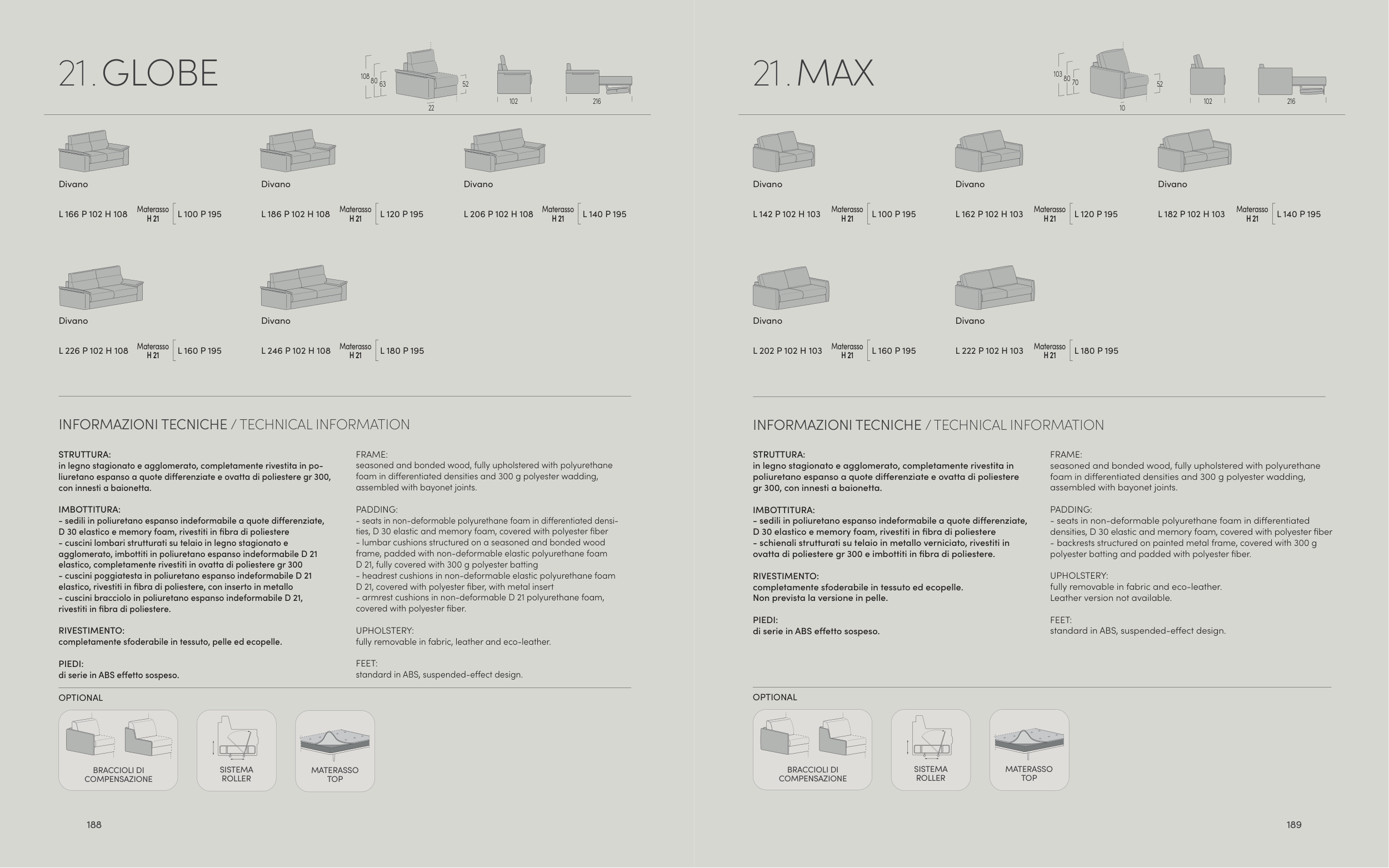 - armrest cushions in non-deformable D 21 polyurethane foam,