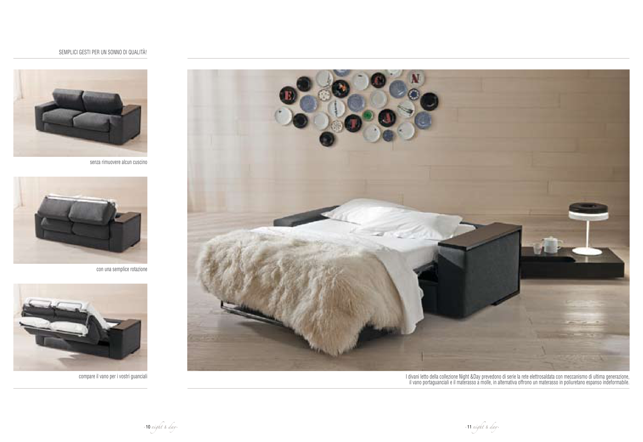 I divani letto della collezione Night &Day prevedono di serie la rete elettrosaldata con meccanismo di ultima generazione,