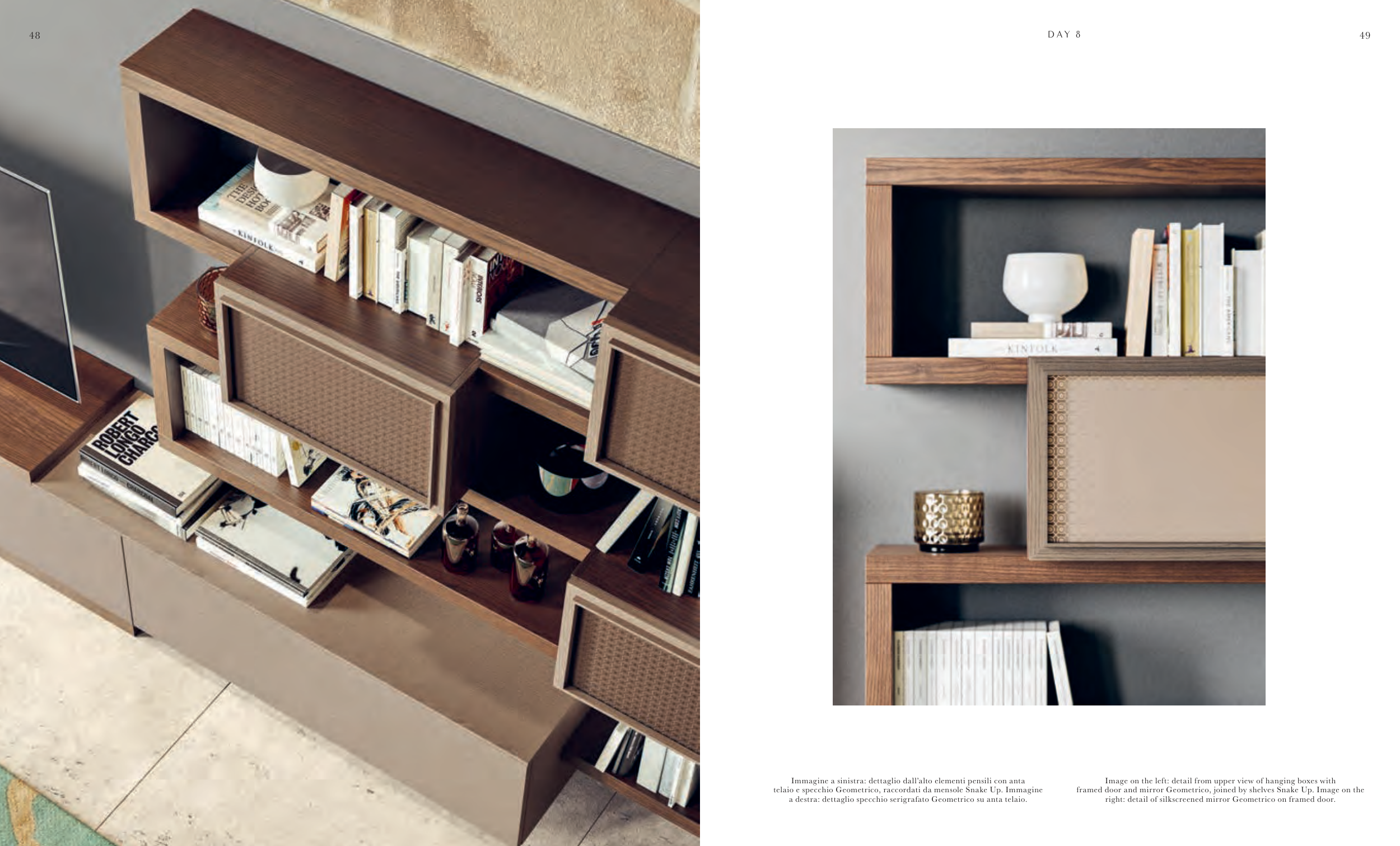 framed door and mirror Geometrico, joined by shelves Snake Up. Image on the