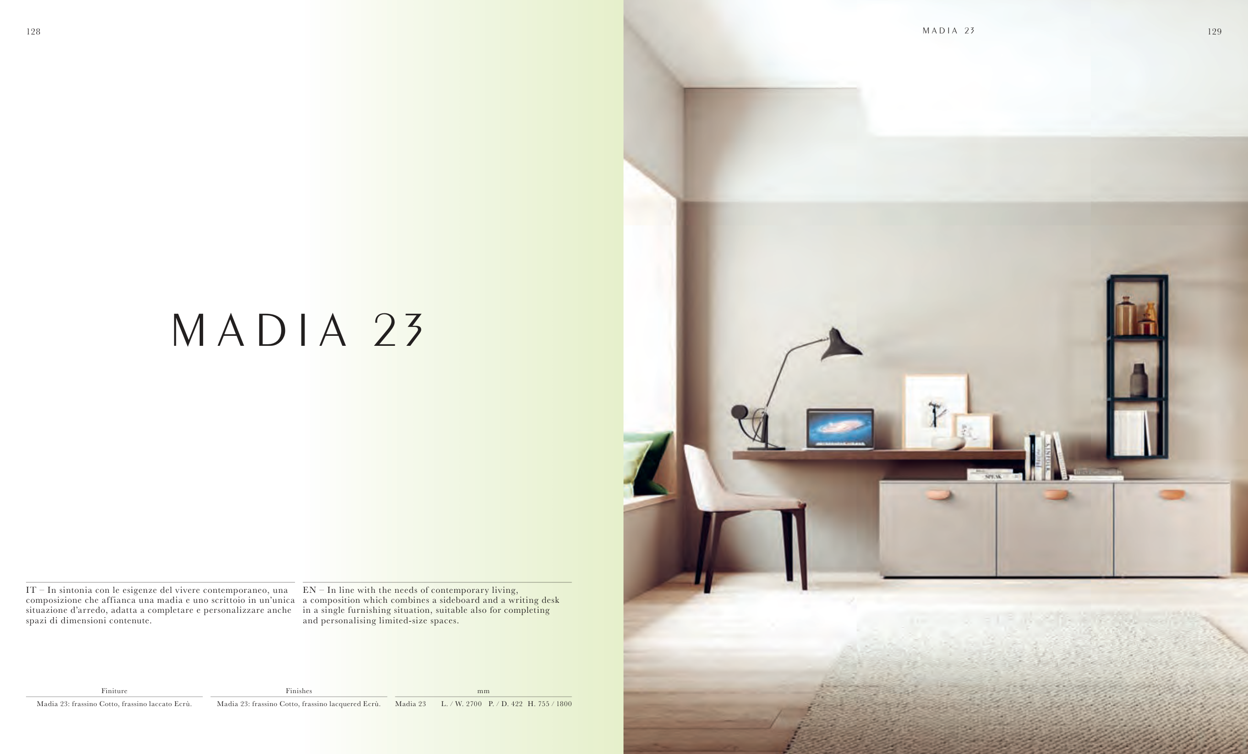 Madia 23: frassino Cotto, frassino lacquered Ecrù.