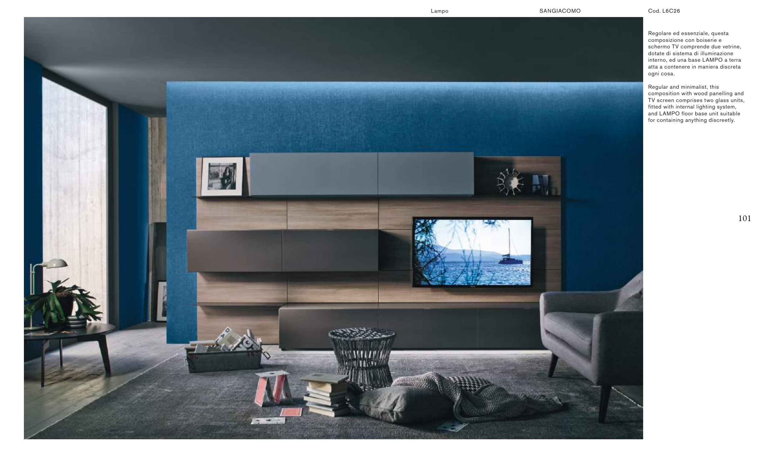 composition with wood panelling and
