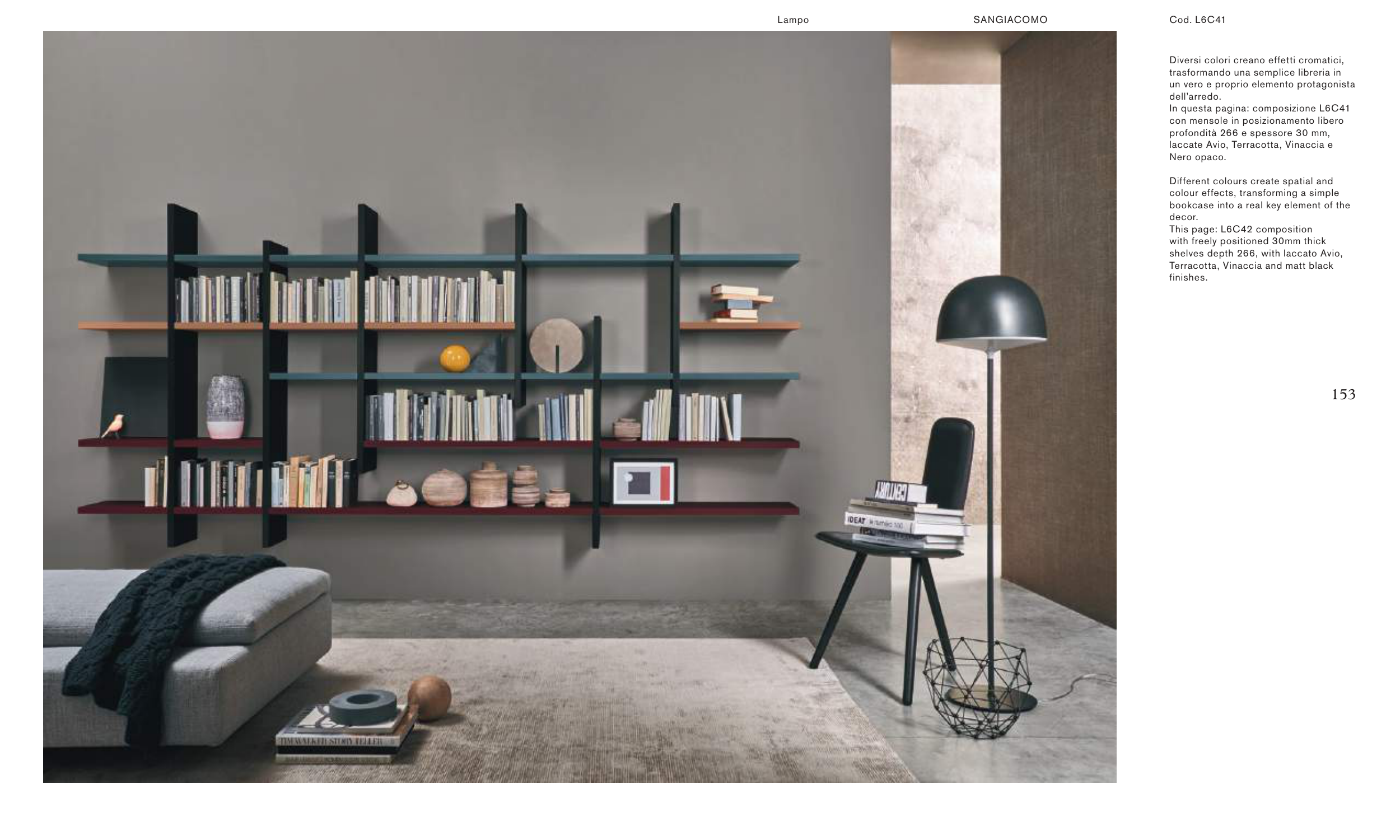 shelves depth 266, with laccato Avio,