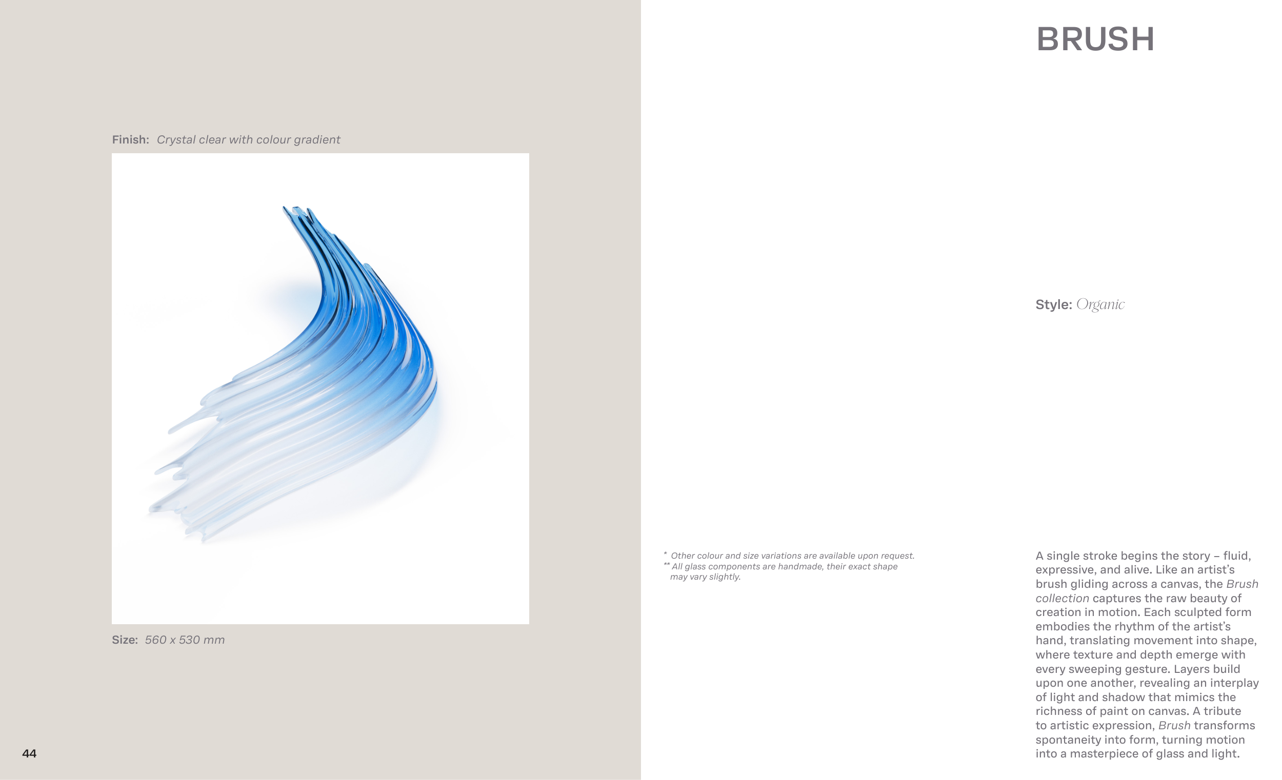 ** All glass components are handmade, their exact shape