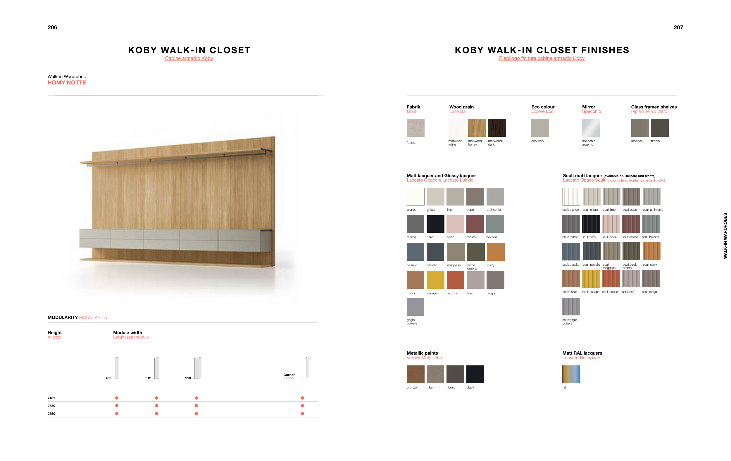 Riepilogo finiture cabine armadio Koby