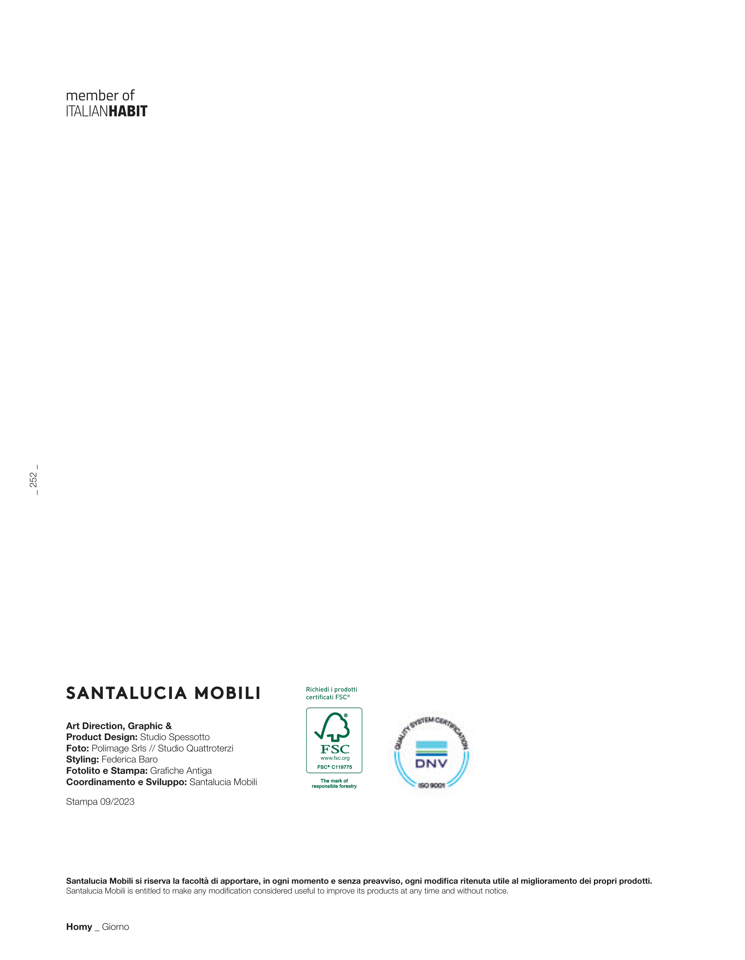 Santalucia Mobili si riserva la facoltà di apportare, in ogni momento e senza preavviso, ogni modifica ritenuta utile al miglioramento dei propri prodotti.