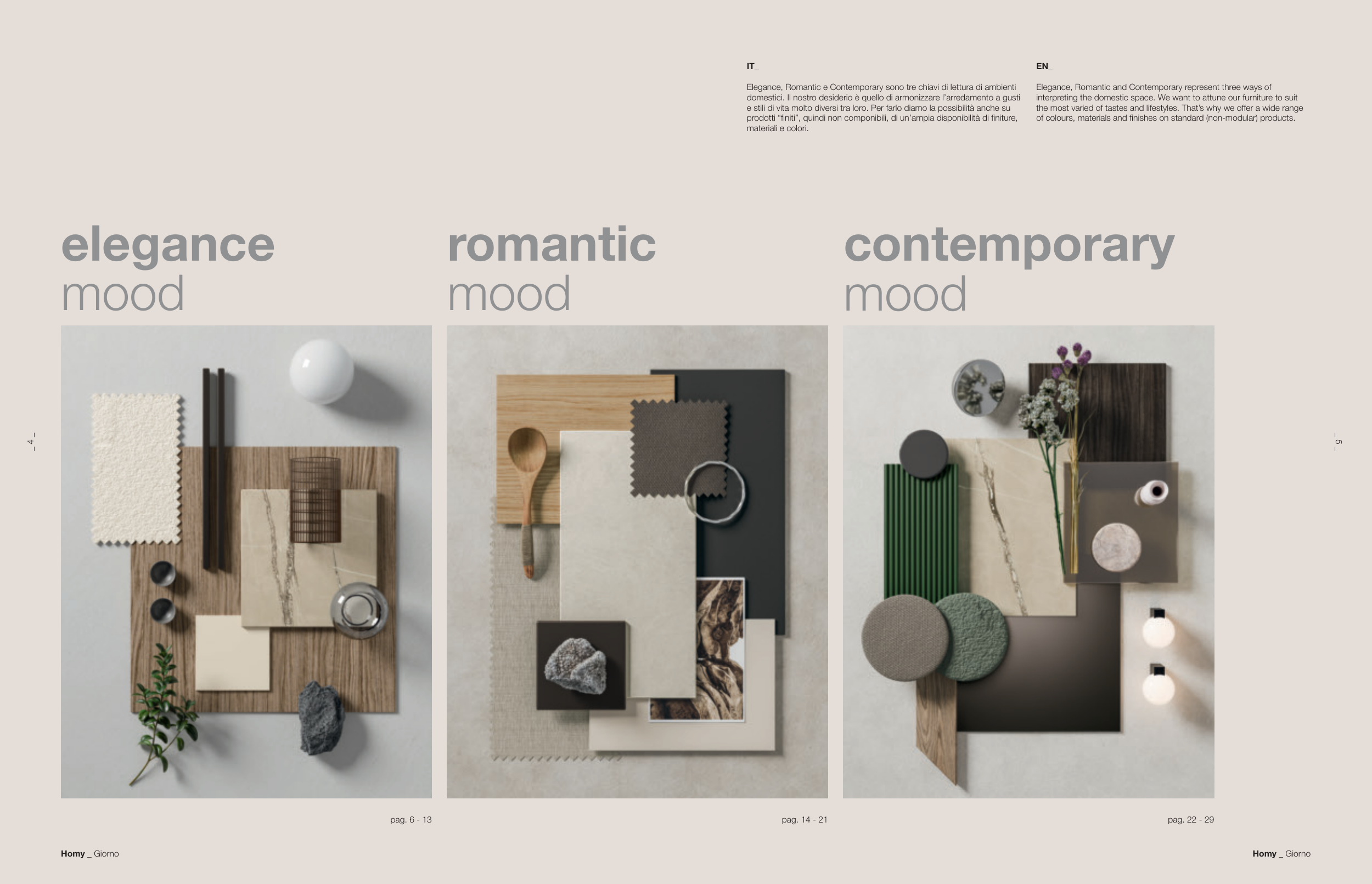 Elegance, Romantic e Contemporary sono tre chiavi di lettura di ambienti