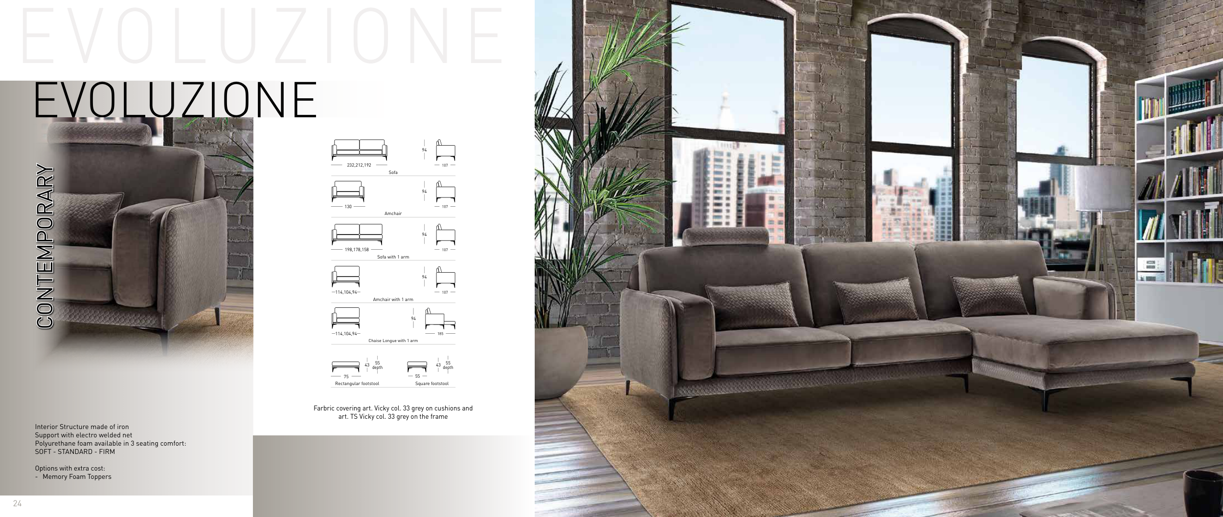 Farbric covering art. Vicky col. 33 grey on cushions and