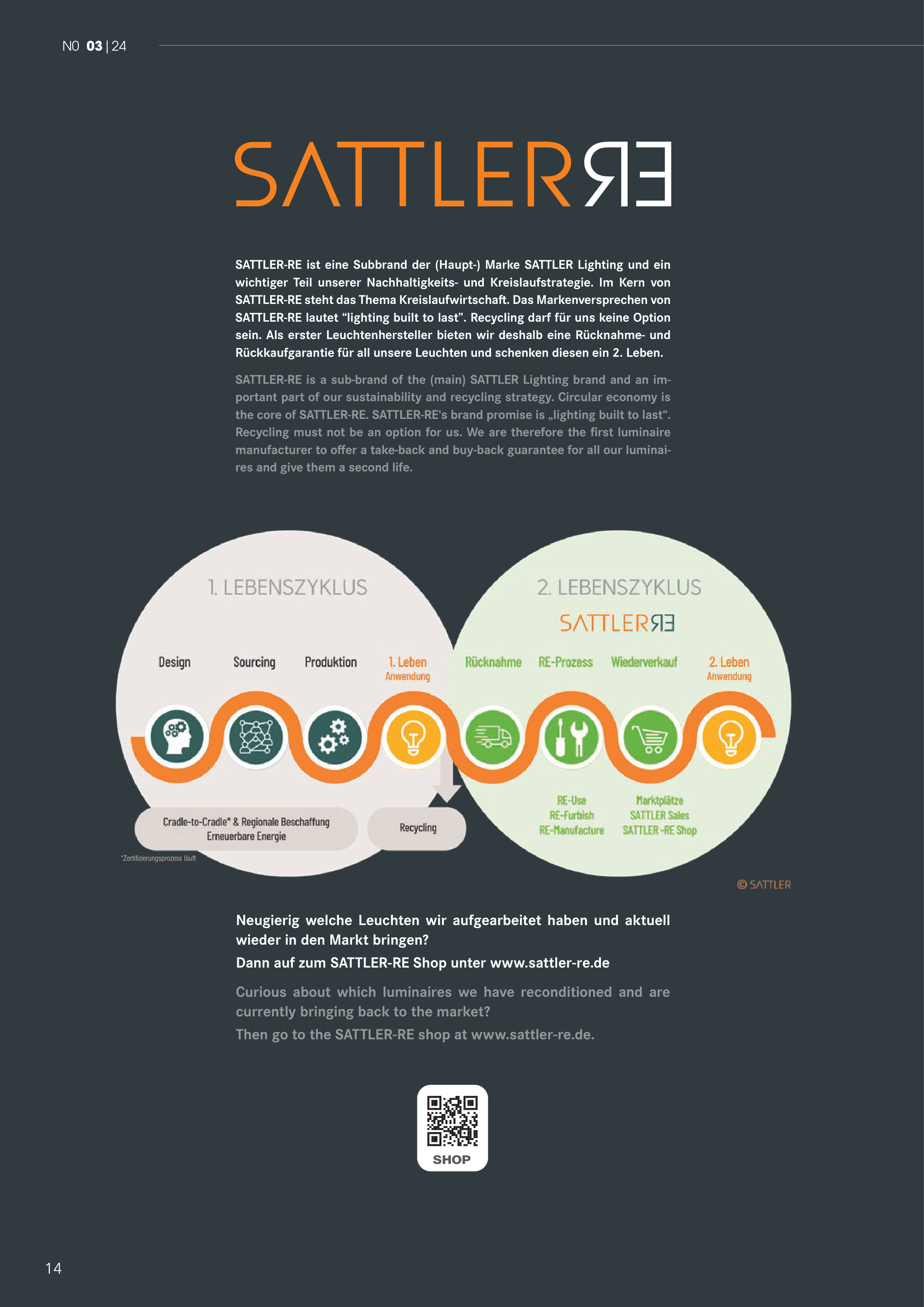 SATTLER-RE lautet “lighting built to last”. Recycling darf für uns keine Option