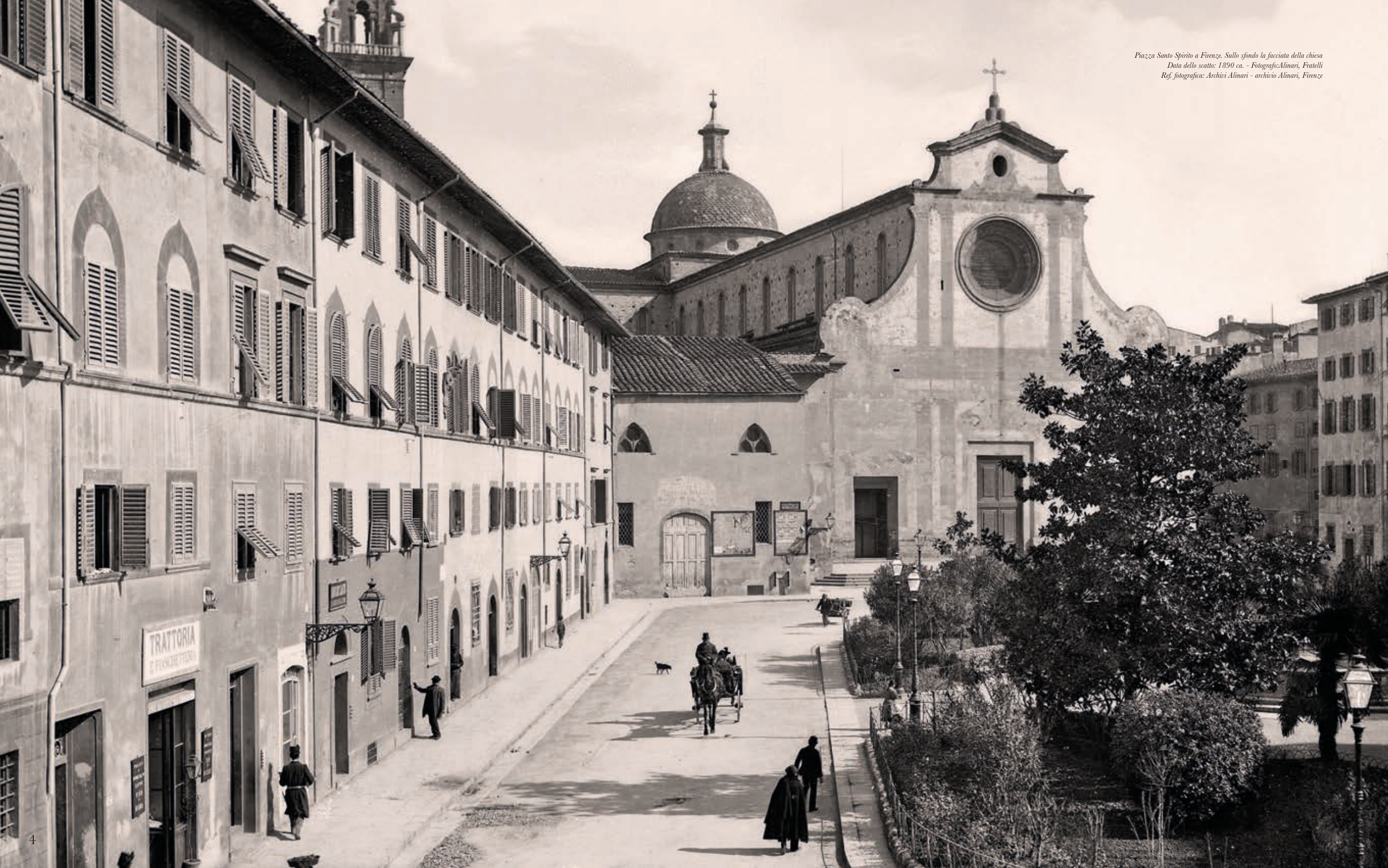 Piazza Santo Spirito a Firenze. Sullo sfondo la facciata della chiesa