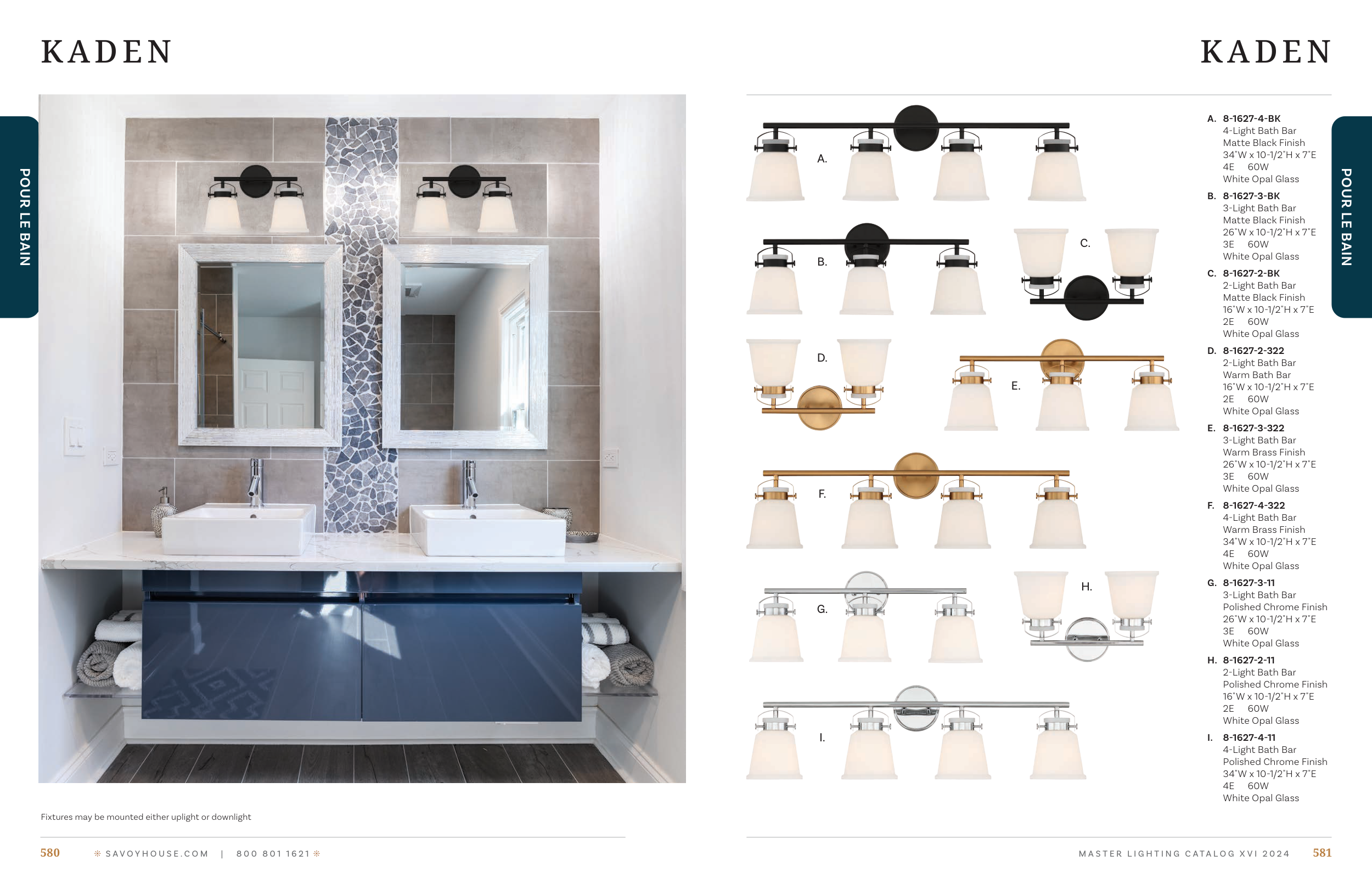 Fixtures may be mounted either uplight or downlight
