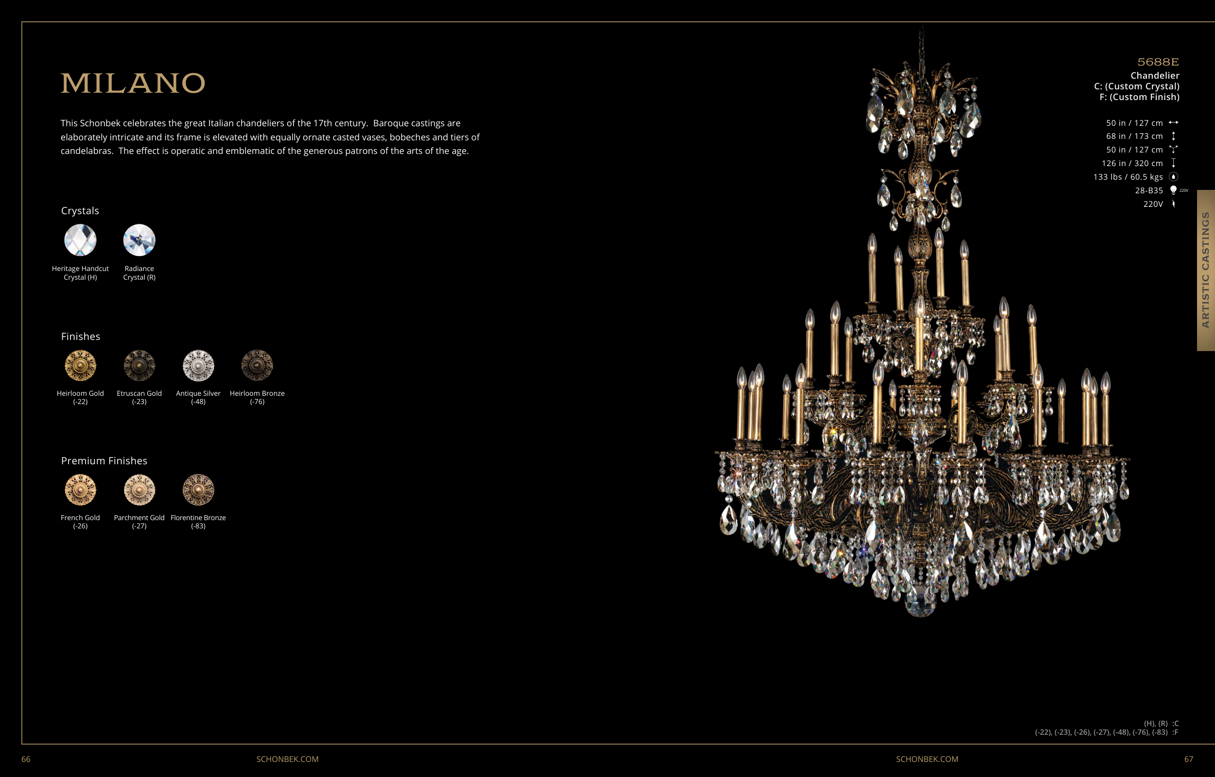 This Schonbek celebrates the great Italian chandeliers of the 17th century. Baroque castings are