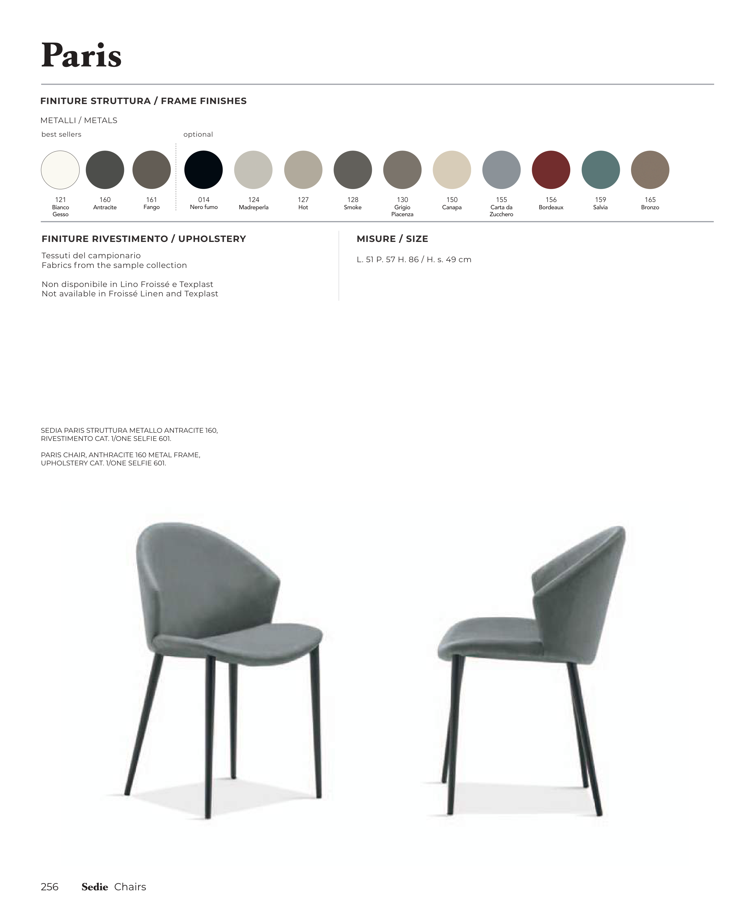 SEDIA PARIS STRUTTURA METALLO ANTRACITE 160,