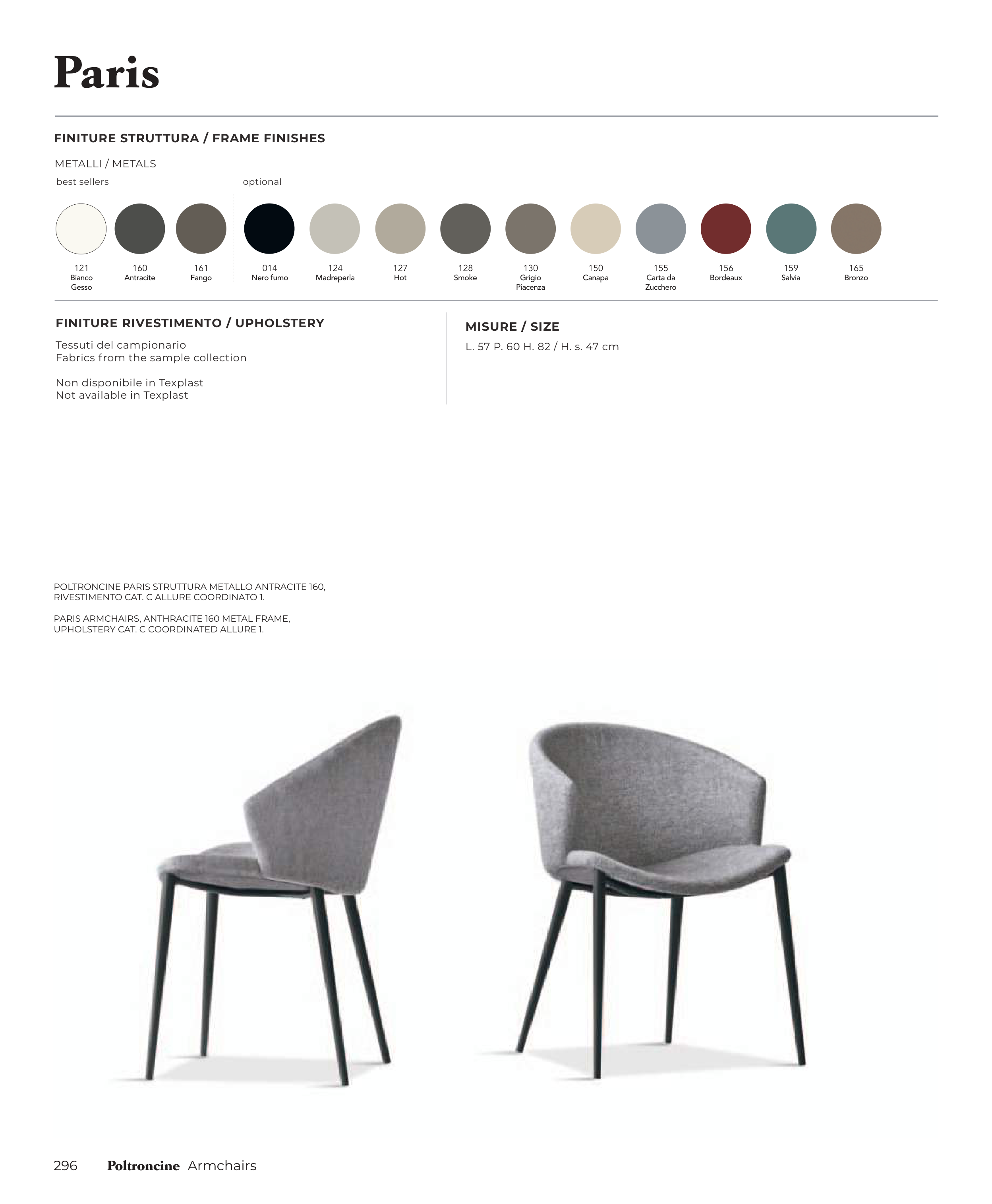 PARIS ARMCHAIRS, ANTHRACITE 160 METAL FRAME,