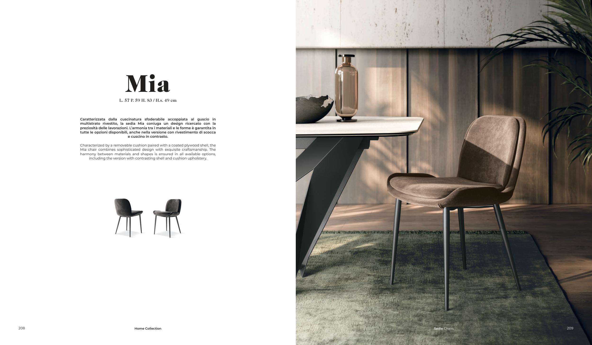 Mia chair combines sophisticated design with exquisite craftsmanship. The