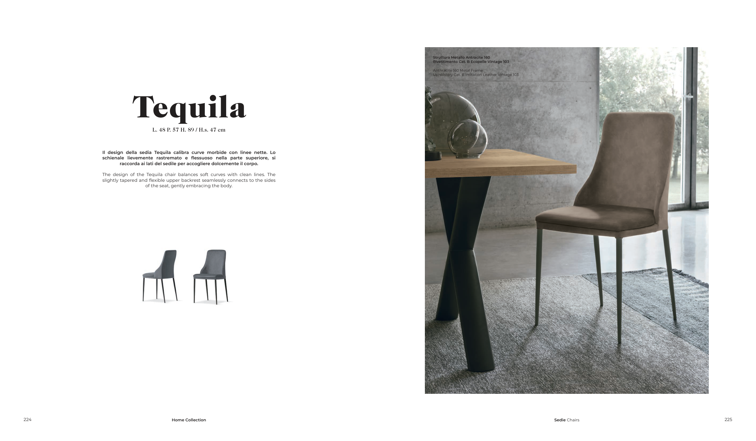 Il design della sedia Tequila calibra curve morbide con linee nette. Lo