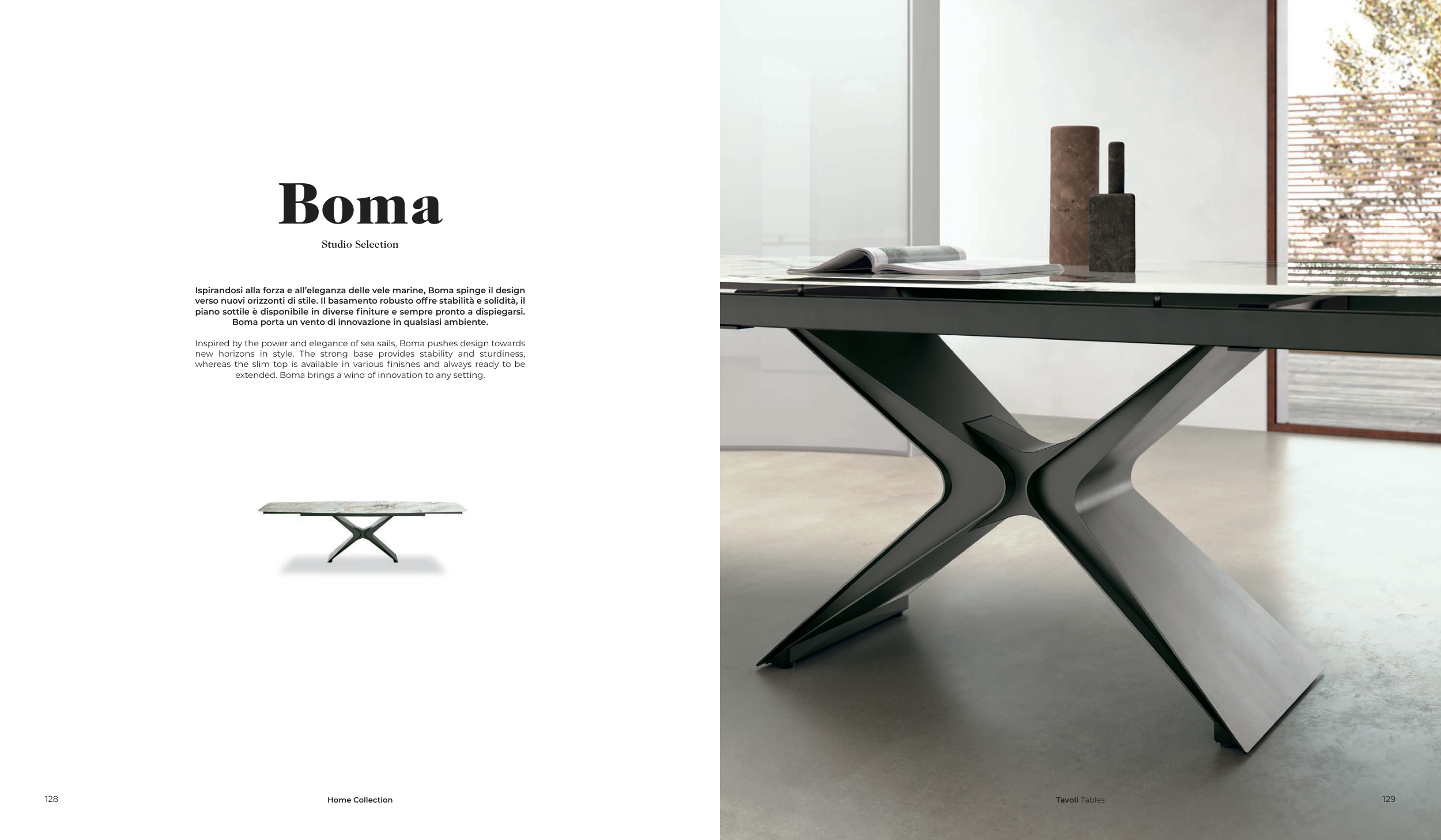 Ispirandosi alla forza e all’eleganza delle vele marine, Boma spinge il design