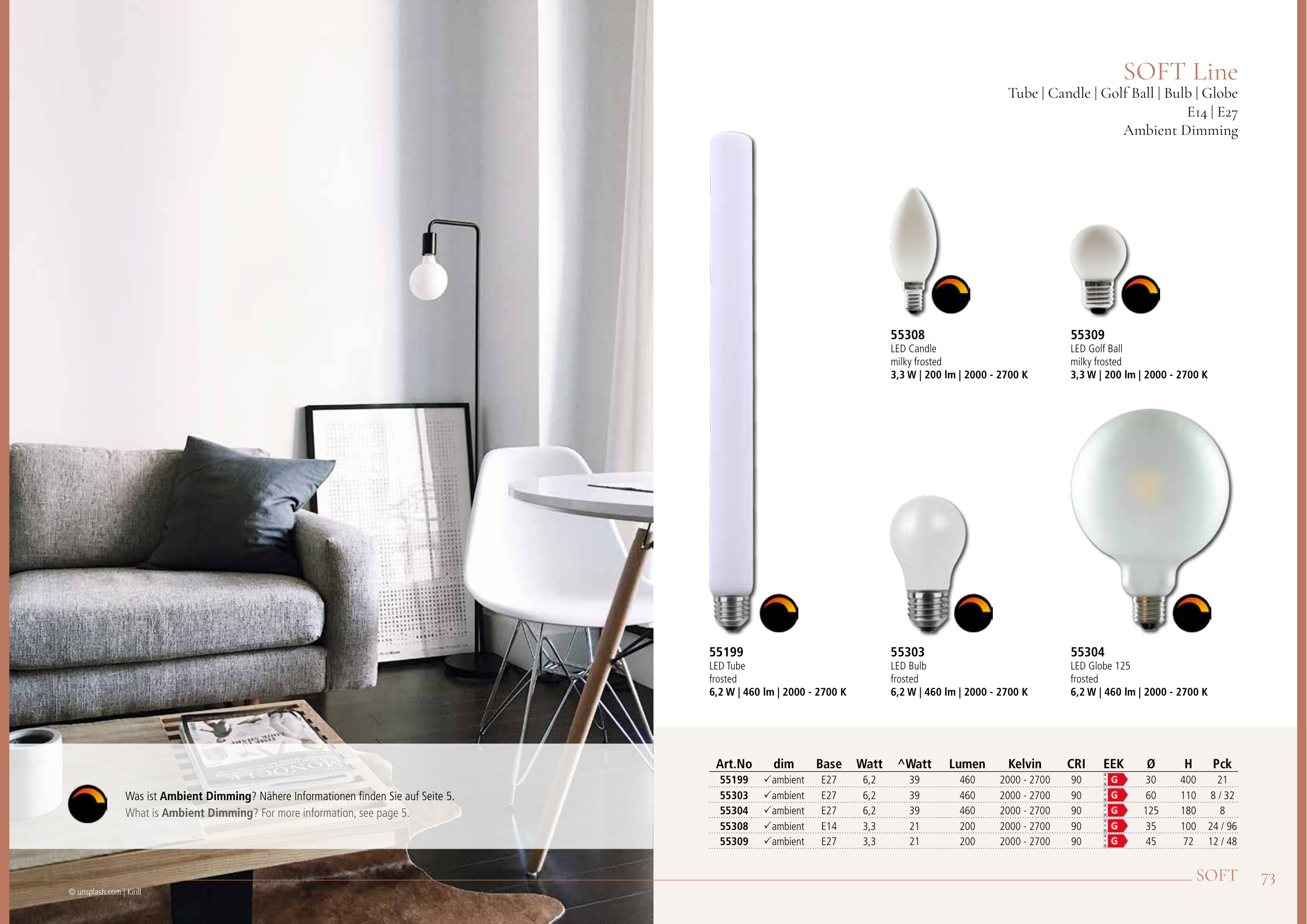 6,2 W | 460 lm | 2000 - 2700 K