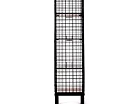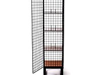 A collection of grid wire storage units made of iron rod and painted iron sheets.