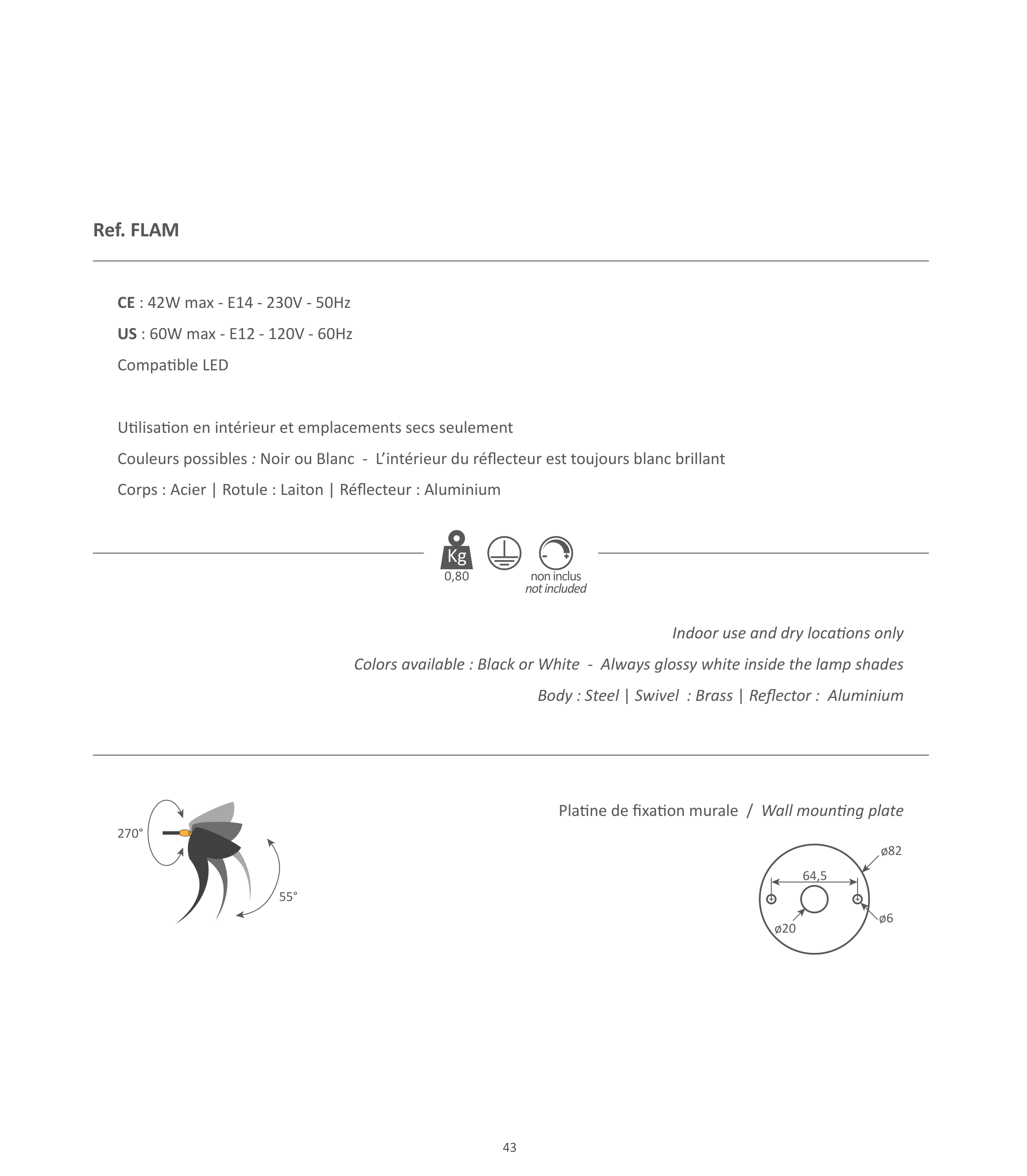 �orps : Acier � Rotule : Laiton � Ré�ecteur : Aluminium