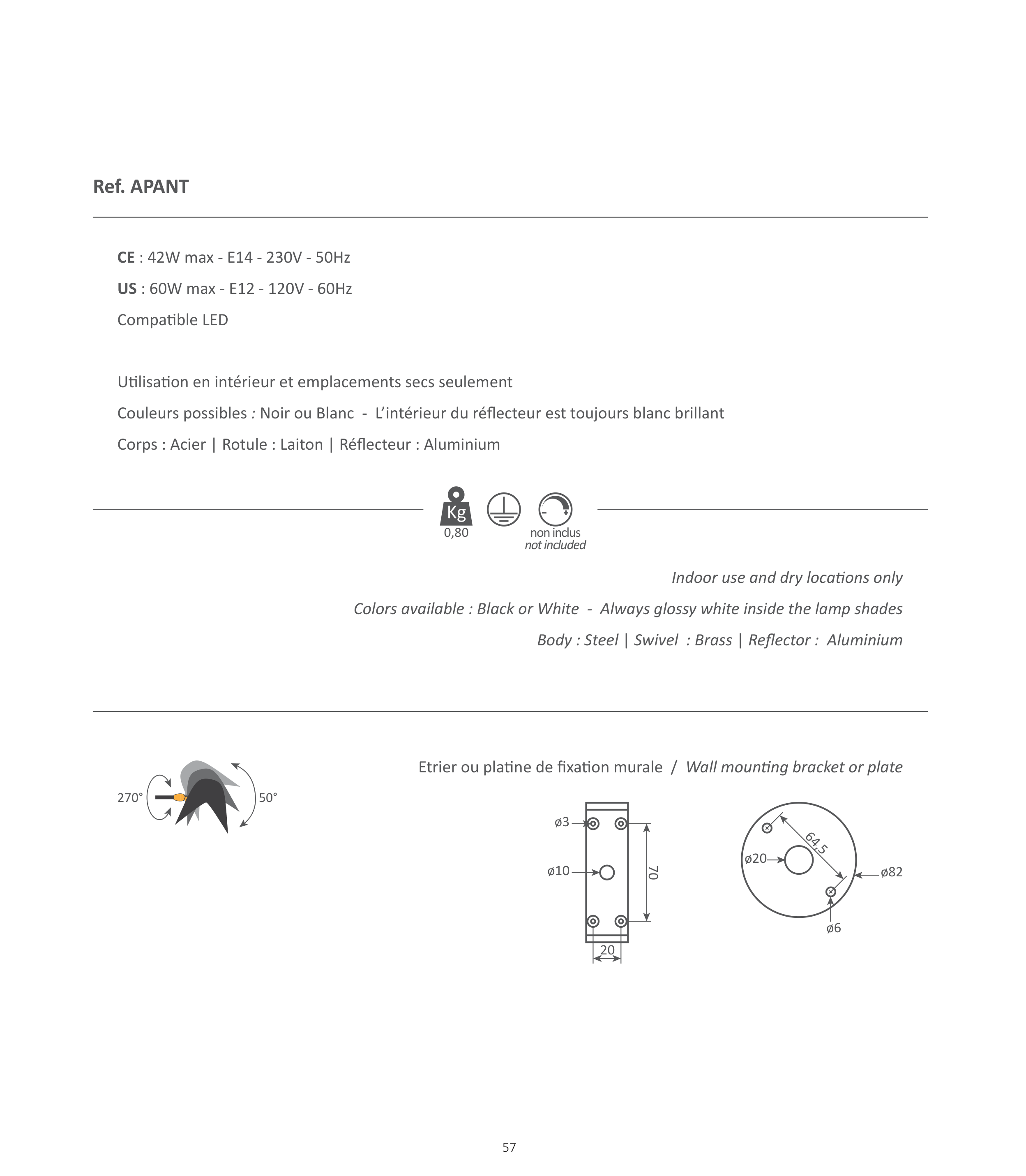 �orps : Acier � Rotule : Laiton � Ré�ecteur : Aluminium