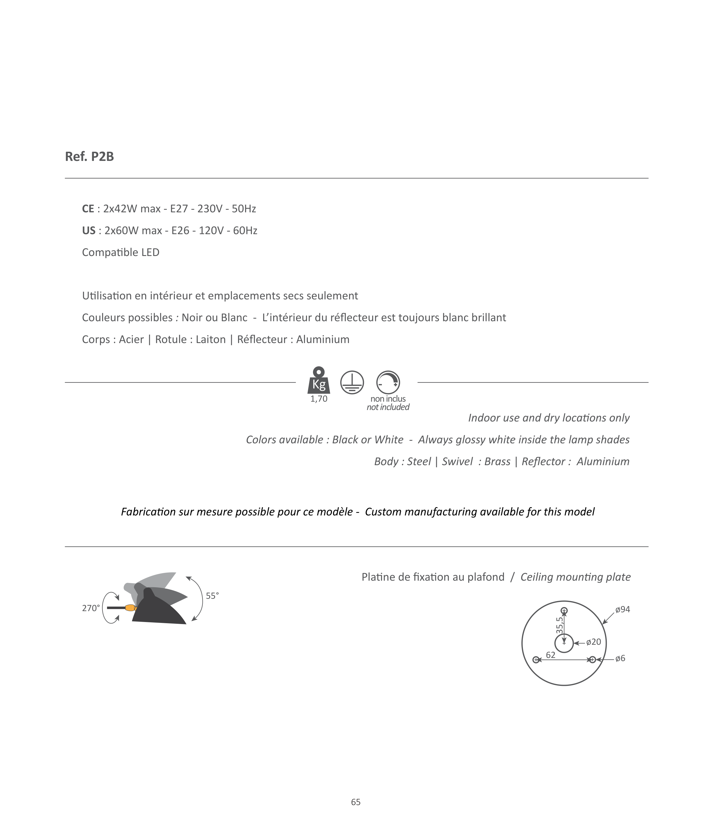 �orps : Acier � Rotule : Laiton � Ré�ecteur : Aluminium
