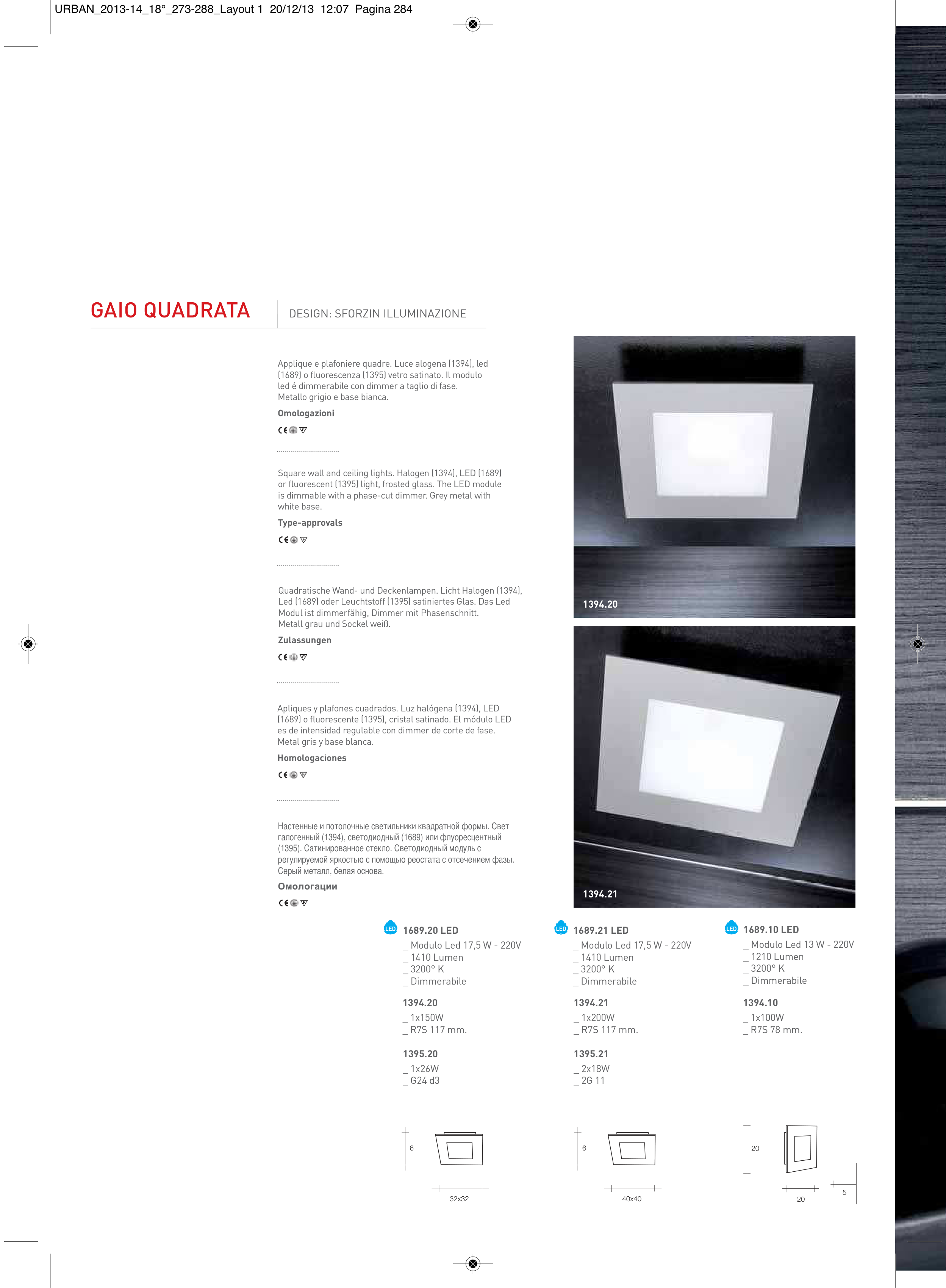 Square wall and ceiling lights. Halogen (1394), LED (1689)