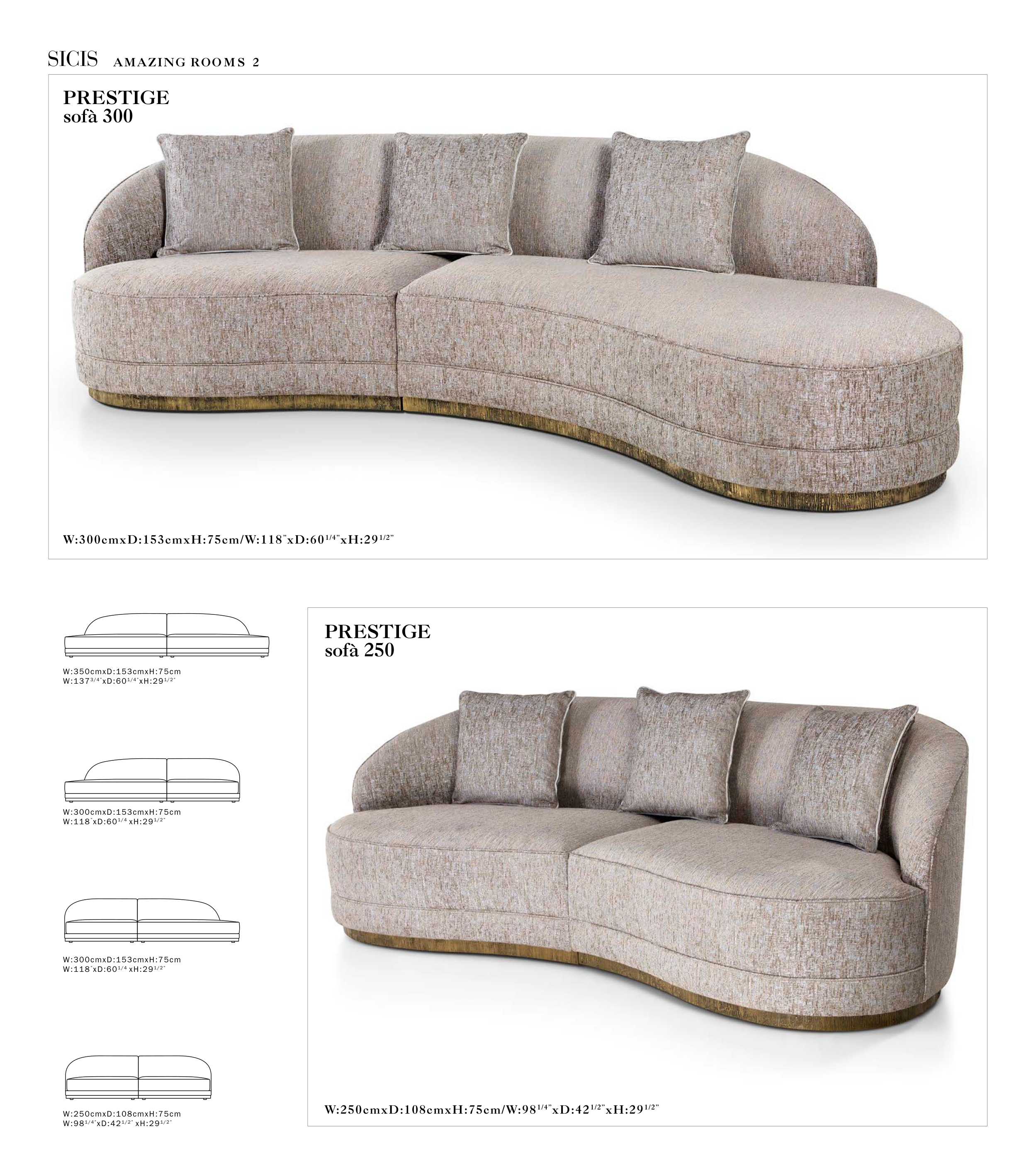 W:250cmxD:108cmxH:75cm/W:98 1/4”xD:42 1/2”xH:29 1/2”