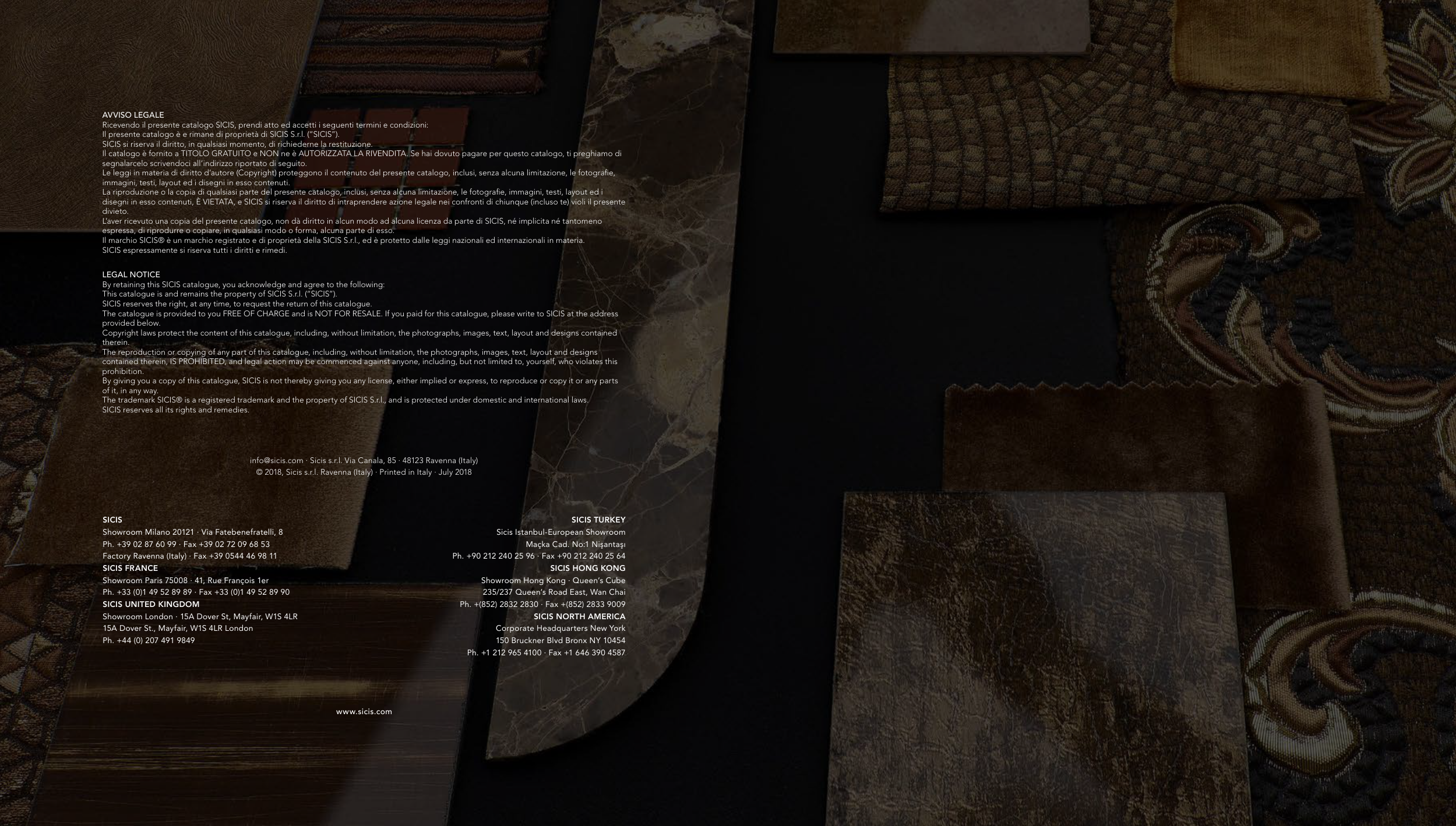 © 2018, Sicis s.r.l. Ravenna (Italy) · Printed in Italy · July 2018