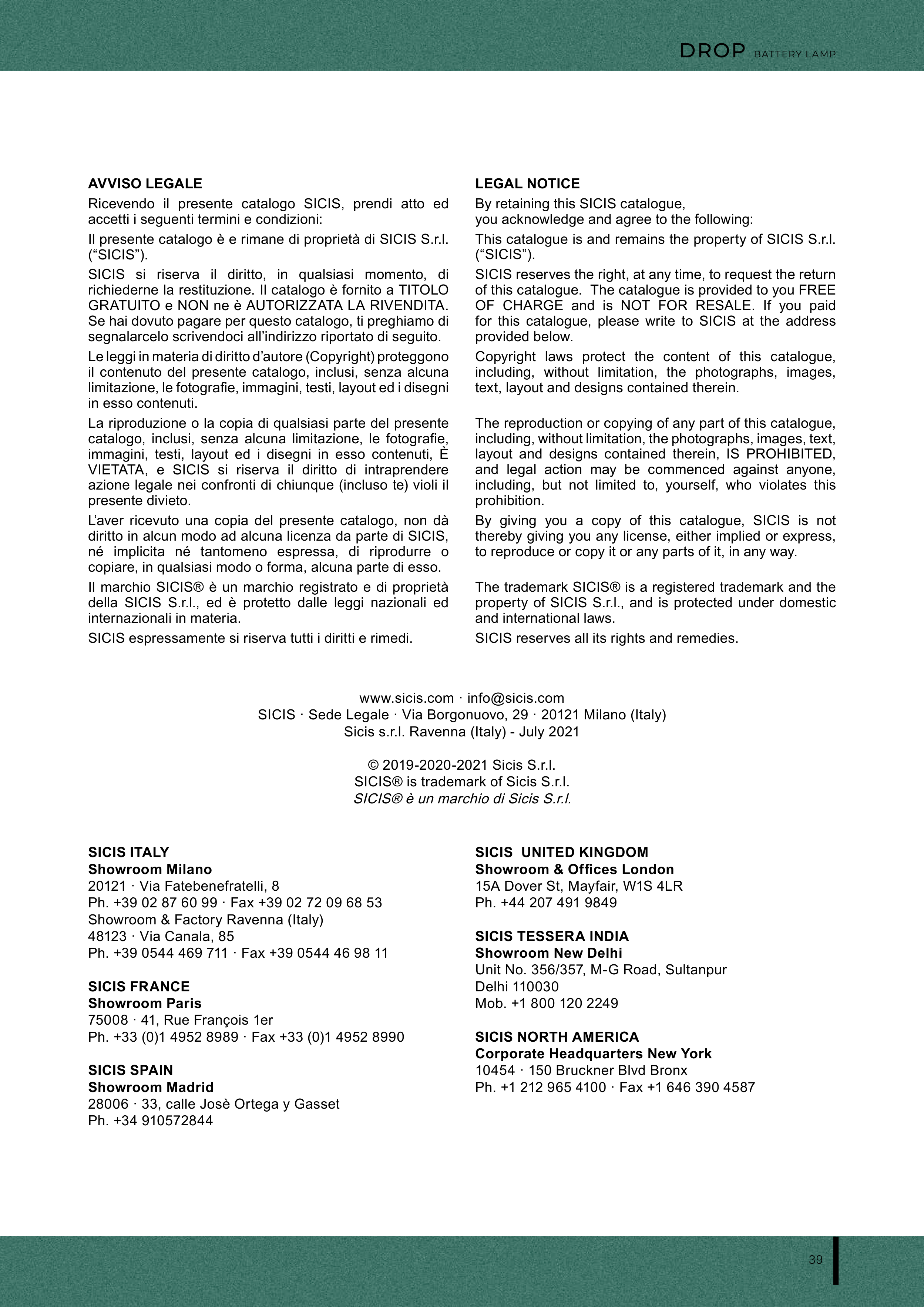 This catalogue is and remains the property of SICIS S.r.l.