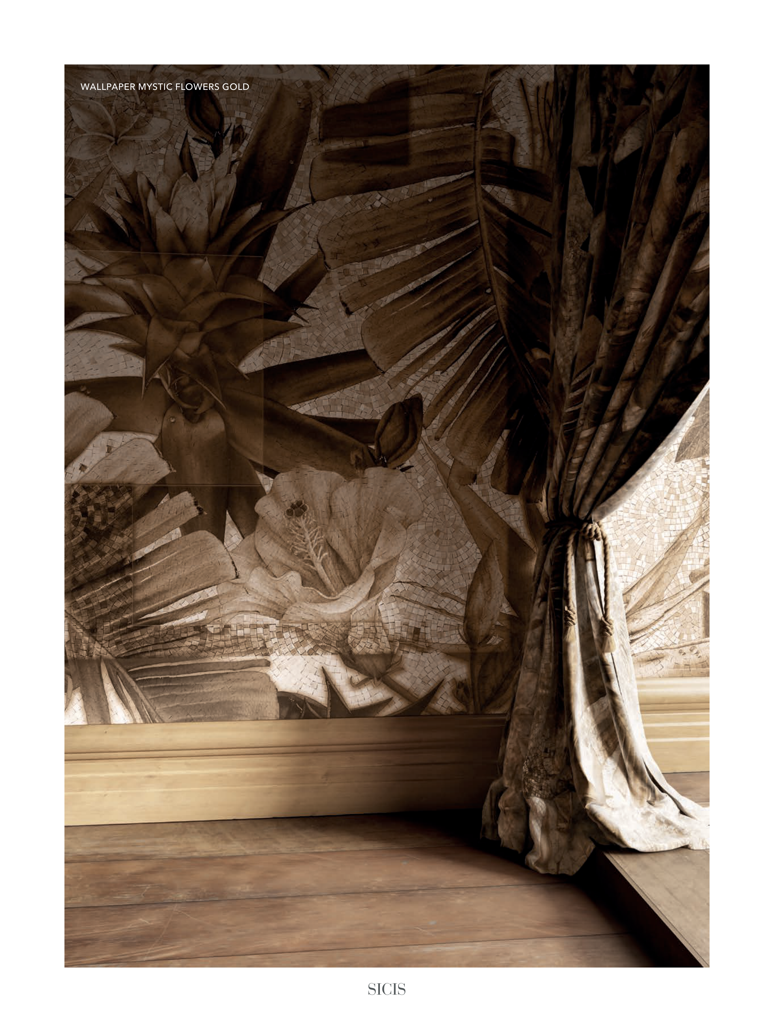 WALLPAPER MYSTIC FLOWERS GOLD