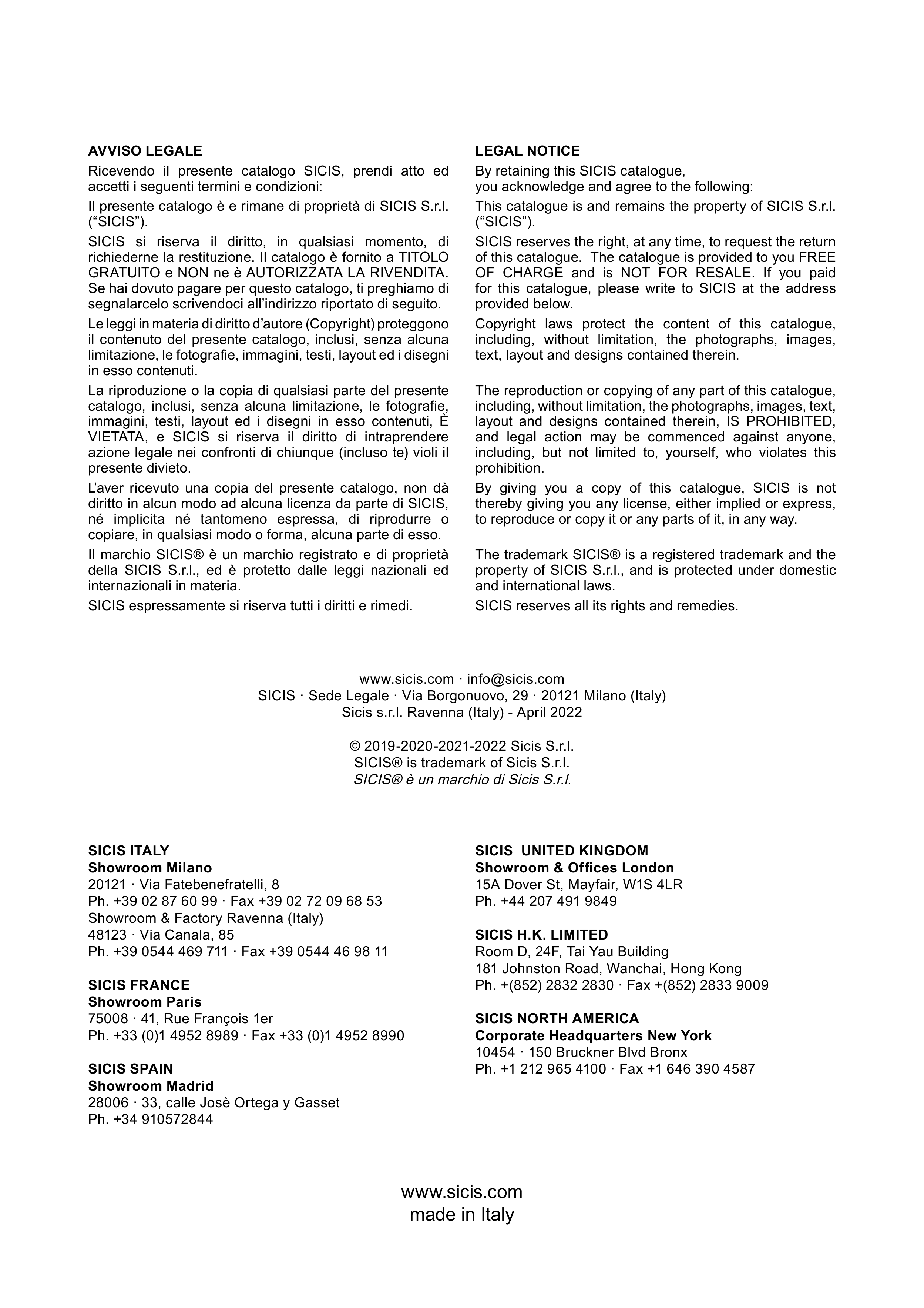 © 2019-2020-2021-2022 Sicis S.r.l.