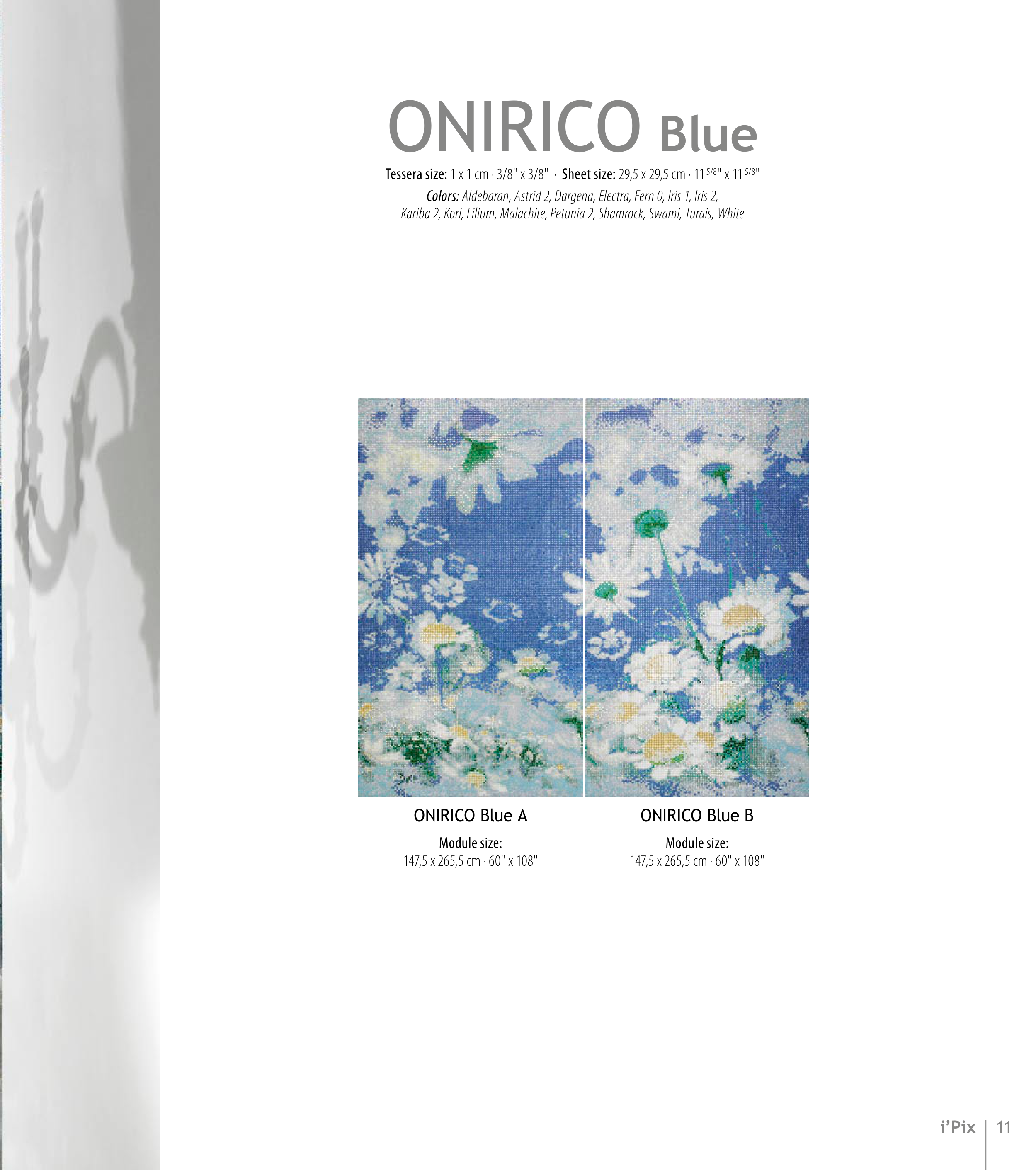 Tessera size: 1 x 1 cm · 3/8" x 3/8" · Sheet size: 29,5 x 29,5 cm · 11 5/8" x 11 5/8"