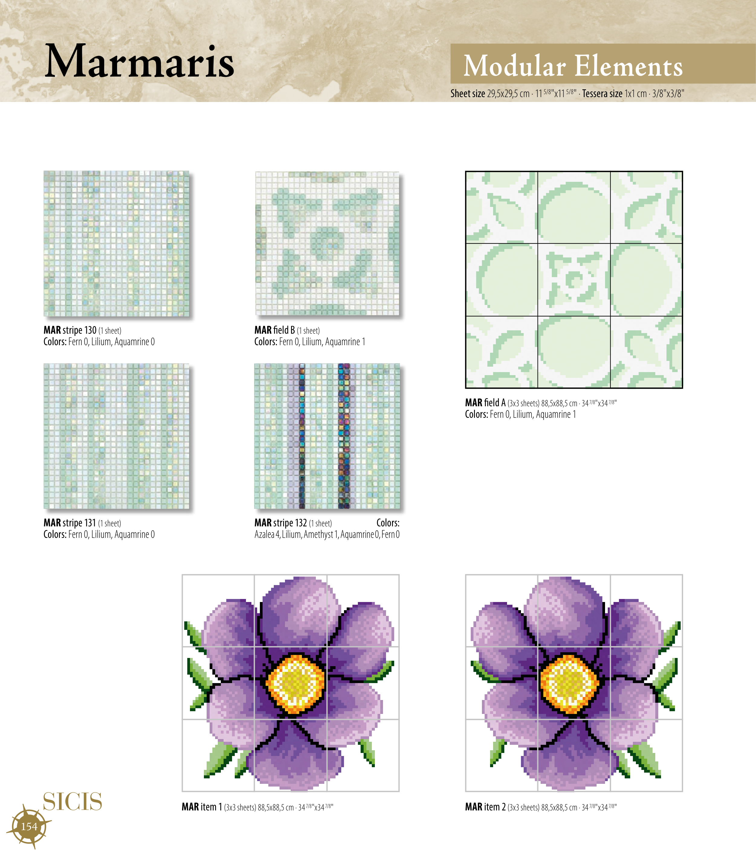 Sheet size 29,5x29,5 cm · 11 5/8"x11 5/8" · Tessera size 1x1 cm · 3/8"x3/8"