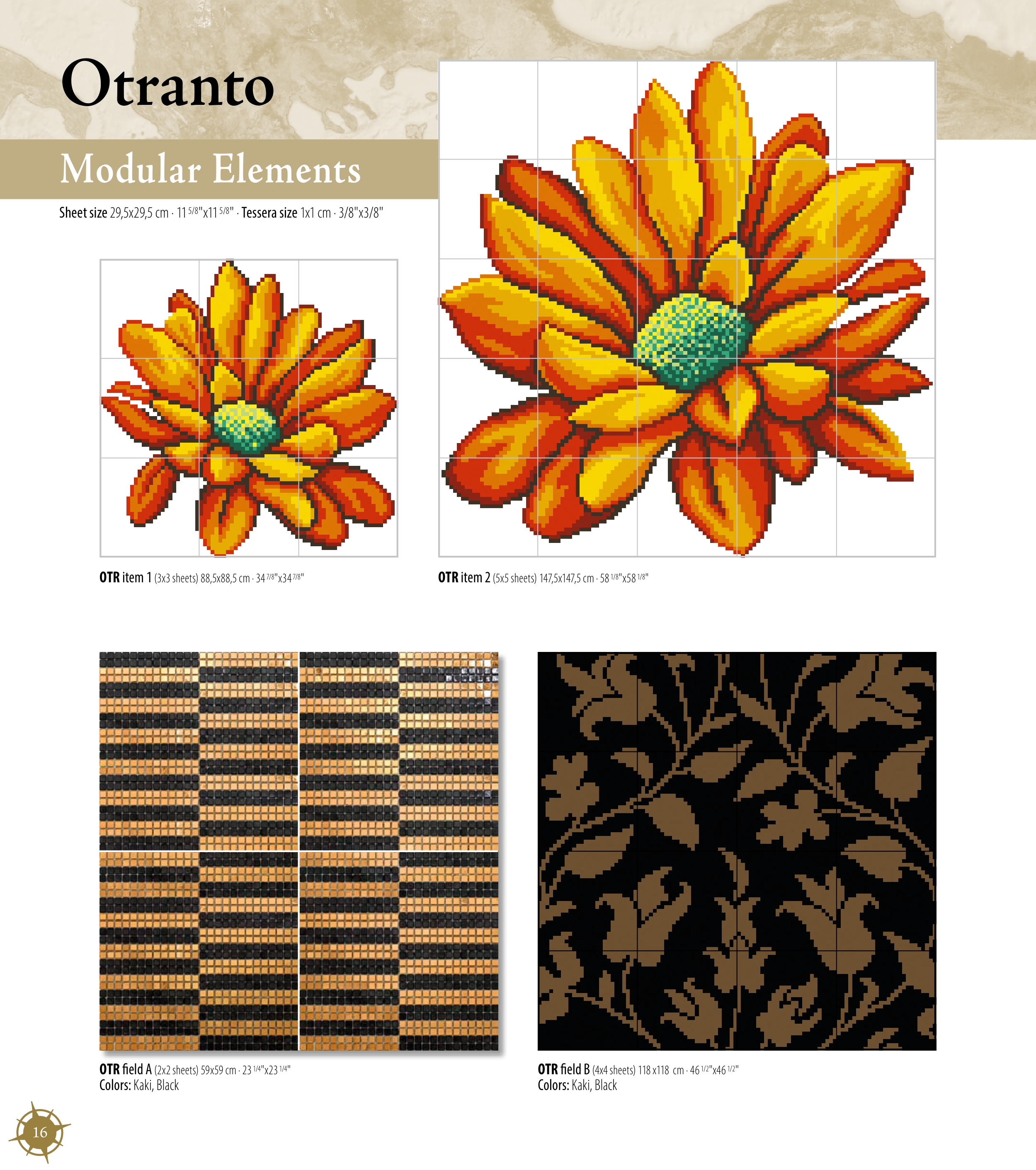 Sheet size 29,5x29,5 cm · 11 5/8"x11 5/8" · Tessera size 1x1 cm · 3/8"x3/8"