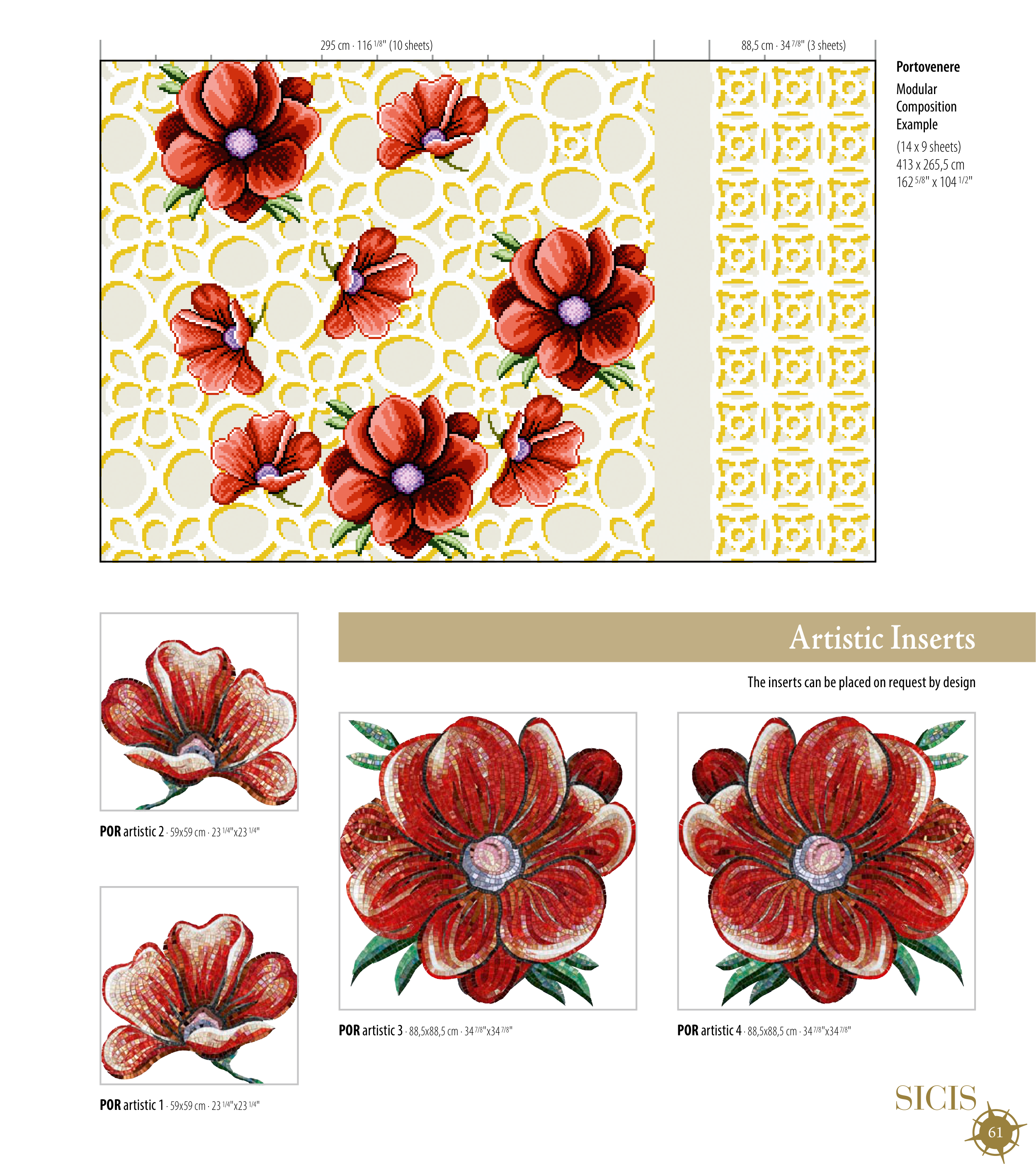 Sheet size 29,5x29,5 cm · 11 5/8"x11 5/8" · Tessera size 1x1 cm · 3/8"x3/8"