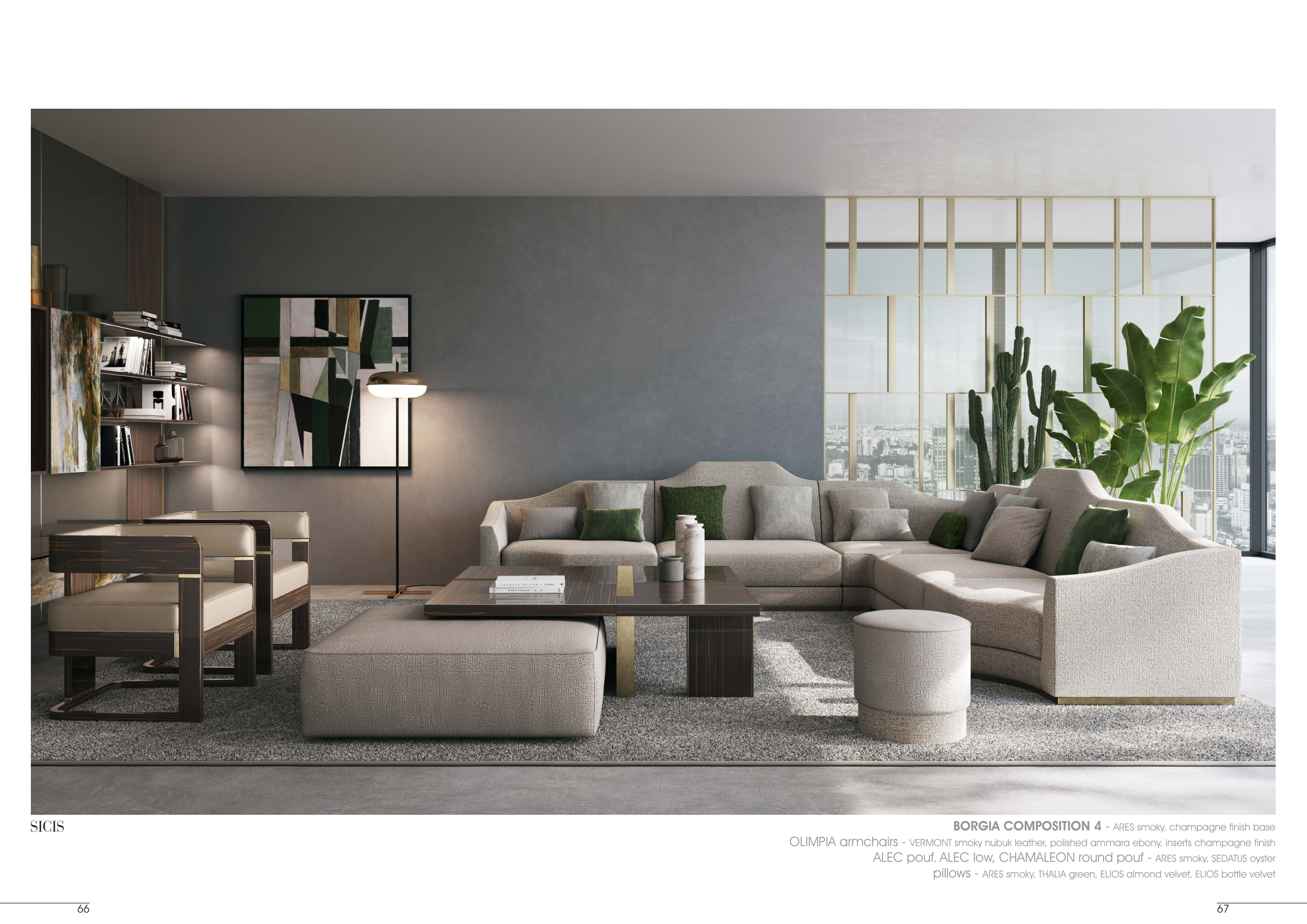 ALEC pouf, ALEC low, CHAMALEON round pouf - ARES smoky, SEDATUS oyster
