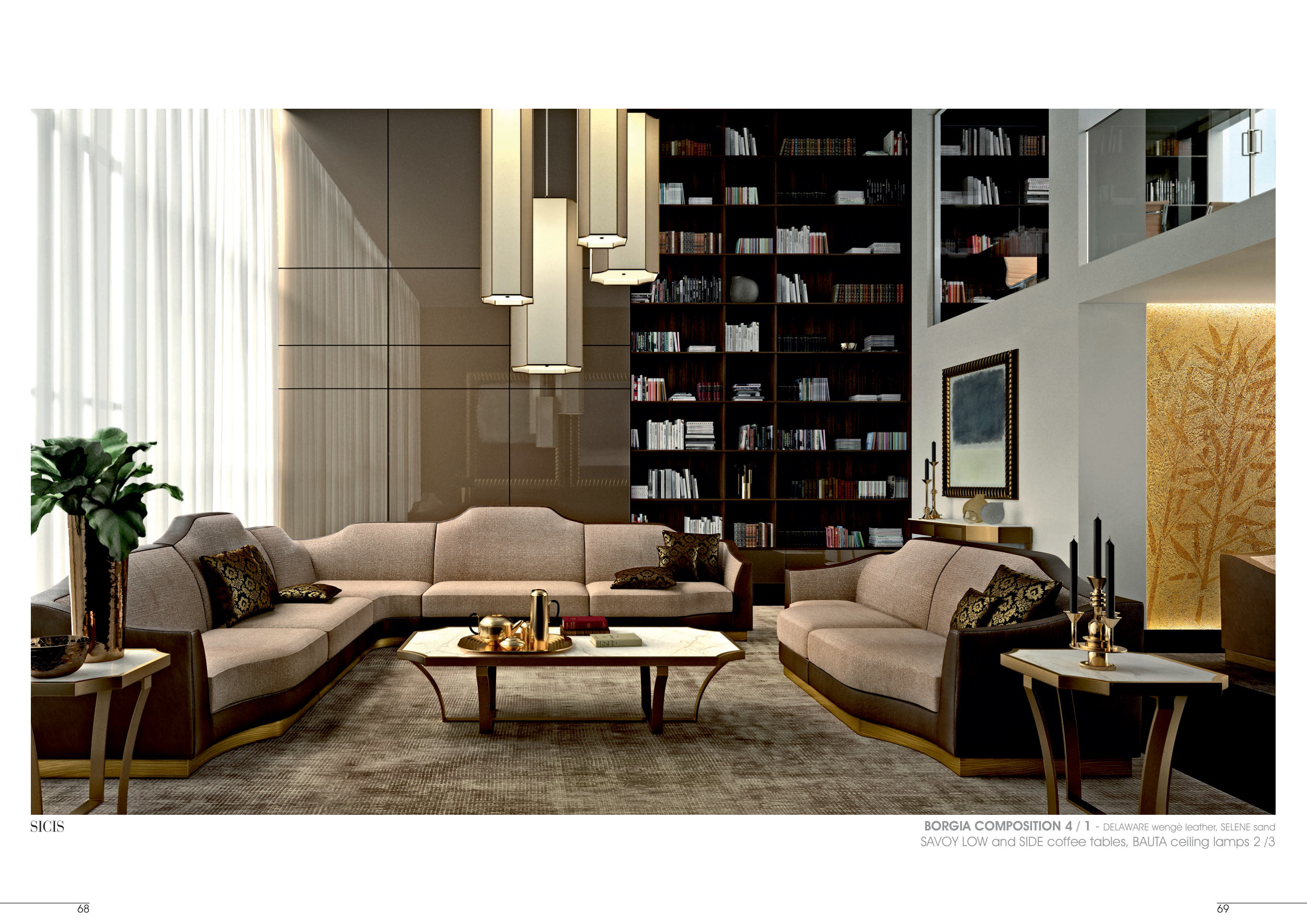 SAVOY LOW and SIDE coffee tables, BAUTA ceiling lamps 2 /3