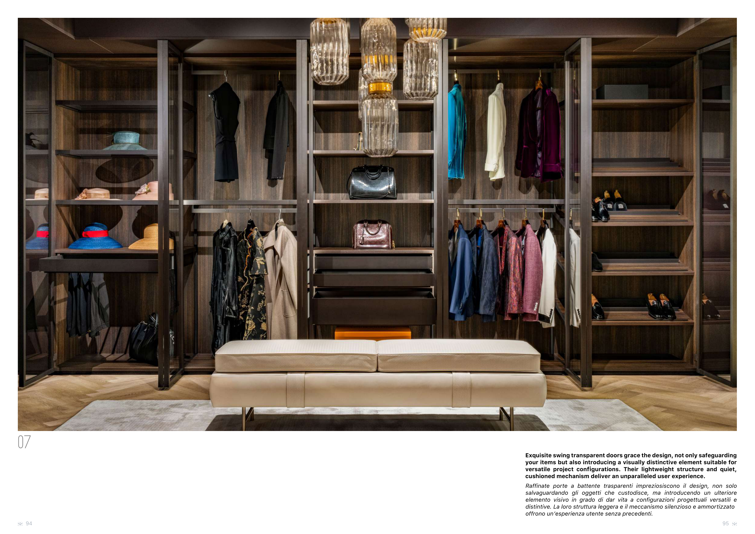 Exquisite swing transparent doors grace the design, not only safeguarding