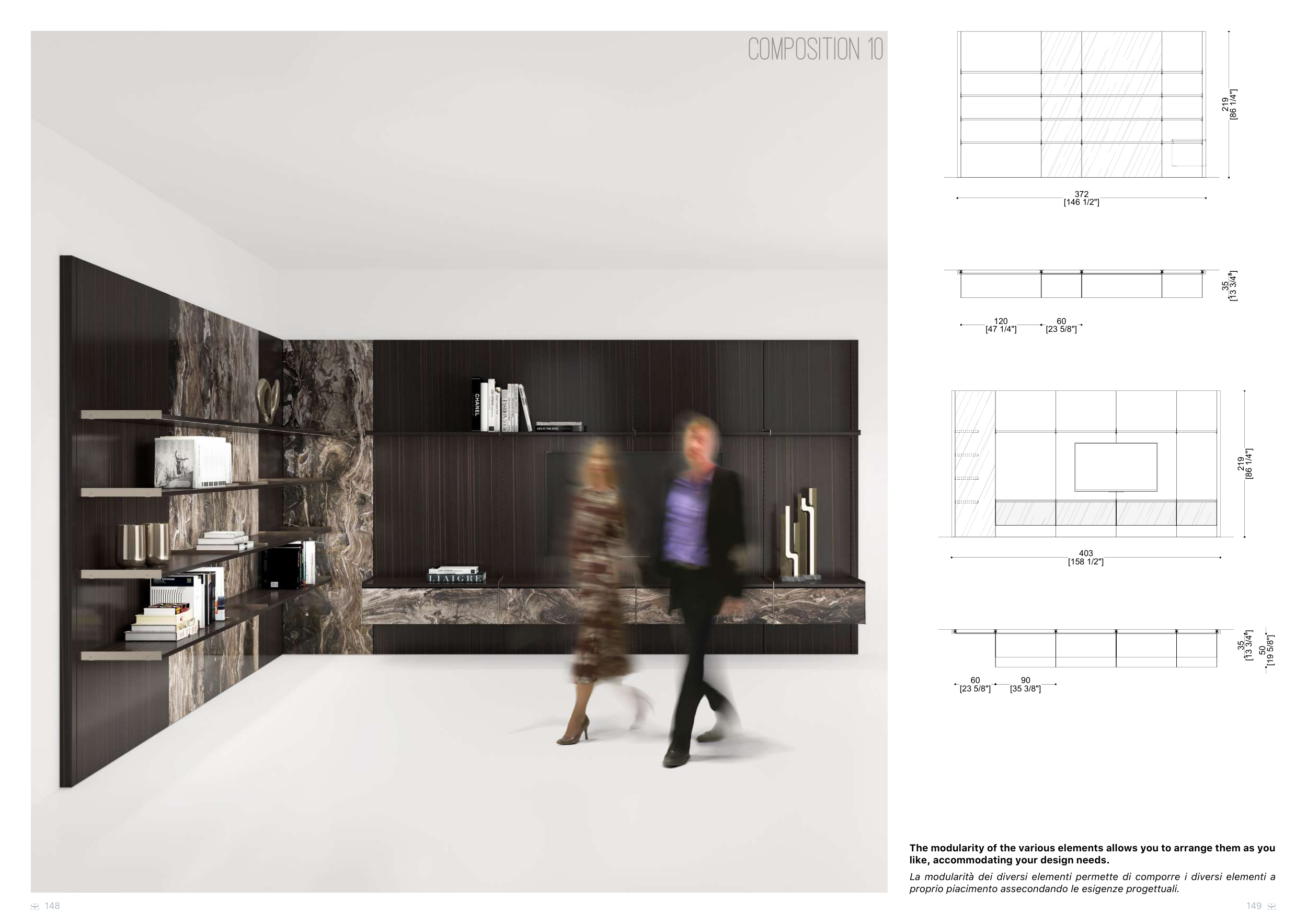 La modularità dei diversi elementi permette di comporre i diversi elementi a