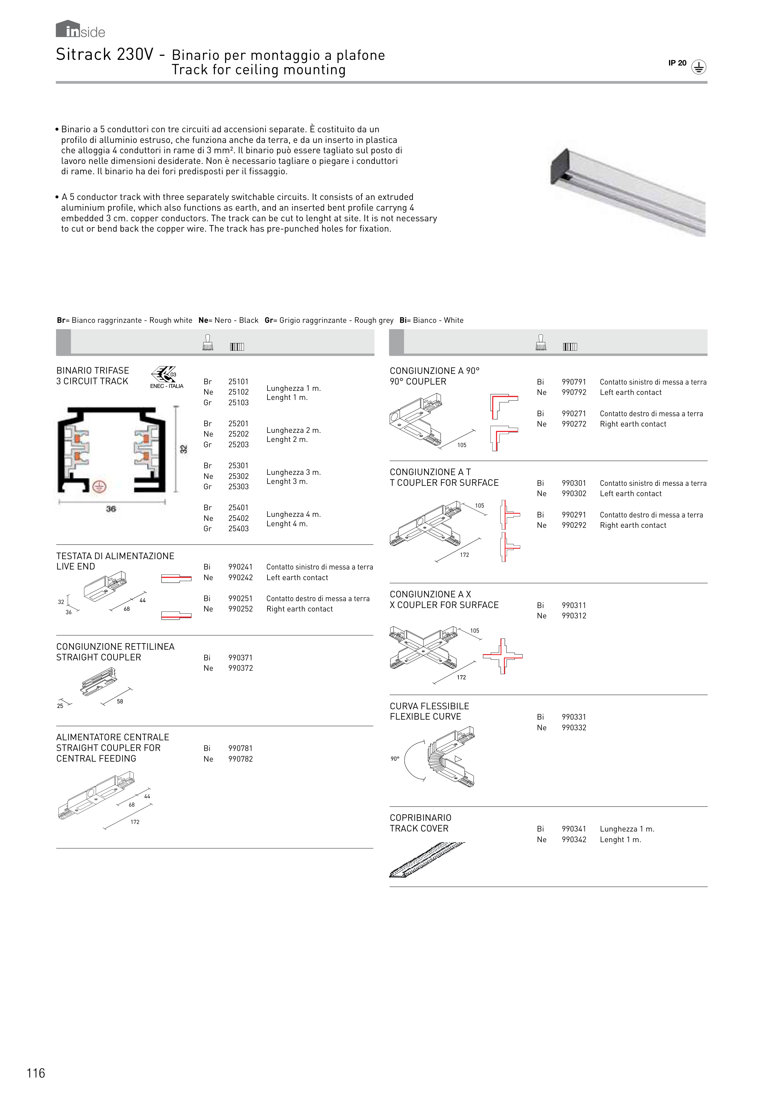 che alloggia 4 conduttori in rame di 3 mm². Il binario può essere tagliato sul posto di