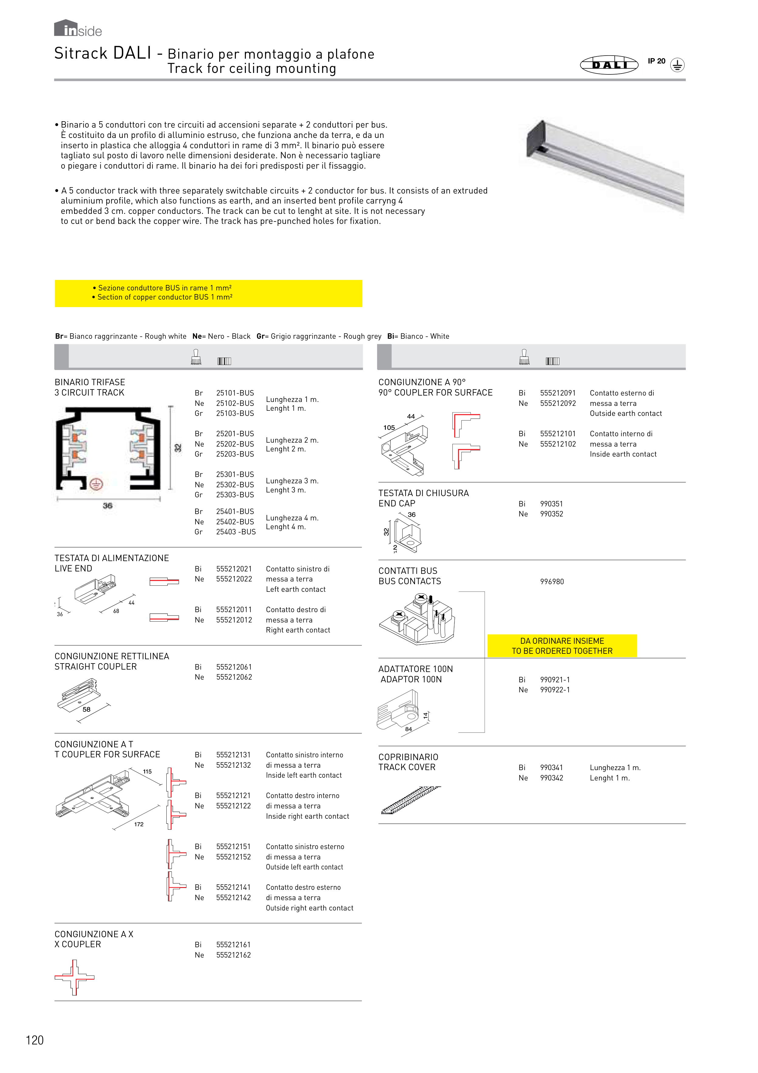 inserto in plastica che alloggia 4 conduttori in rame di 3 mm². Il binario può essere