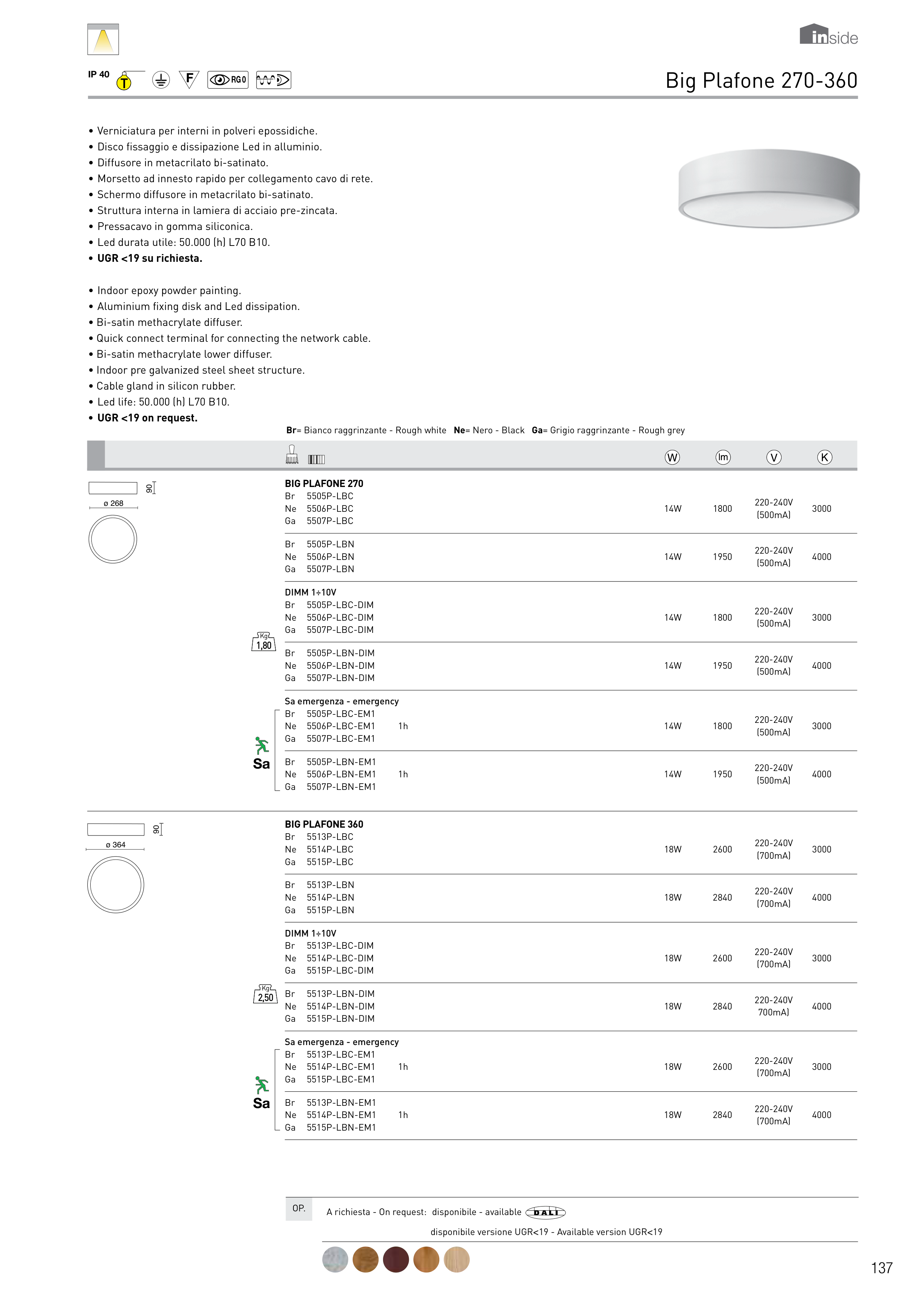 • aluminium fixing disk and Led dissipation.