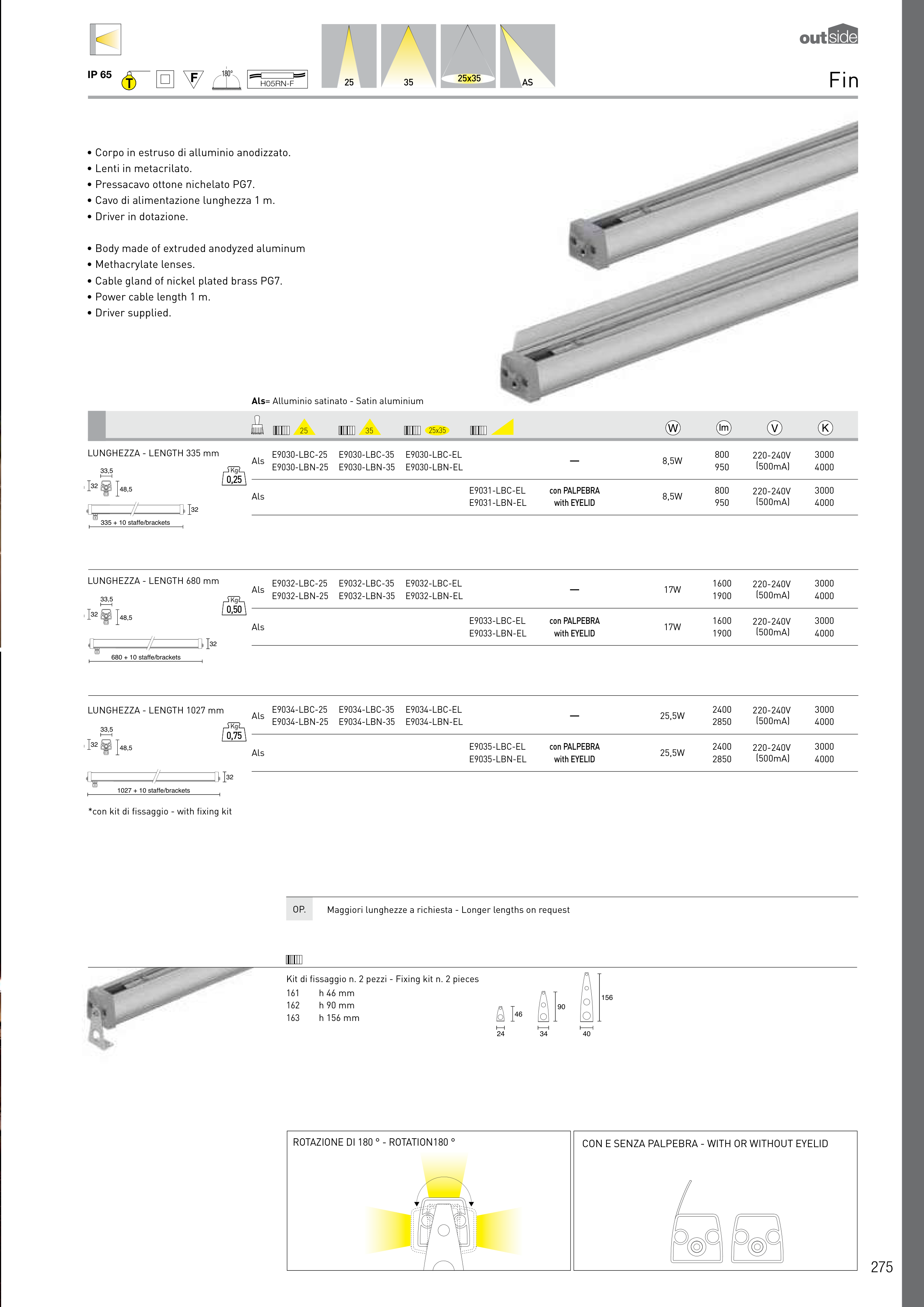 • Body made of extruded anodyzed aluminum