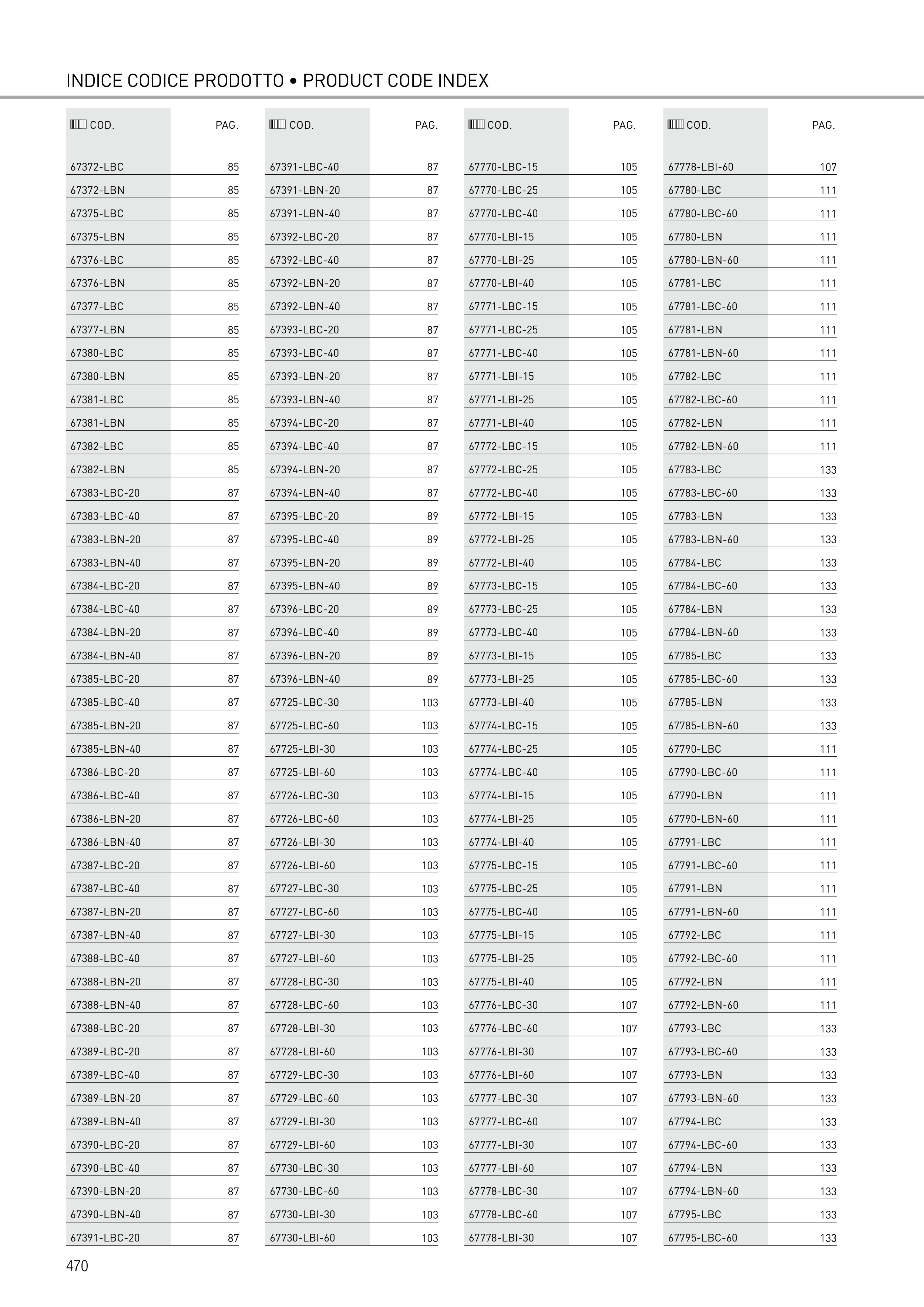 INDICE CODICE PRODOTTO • PRODUCT CODE INDEX