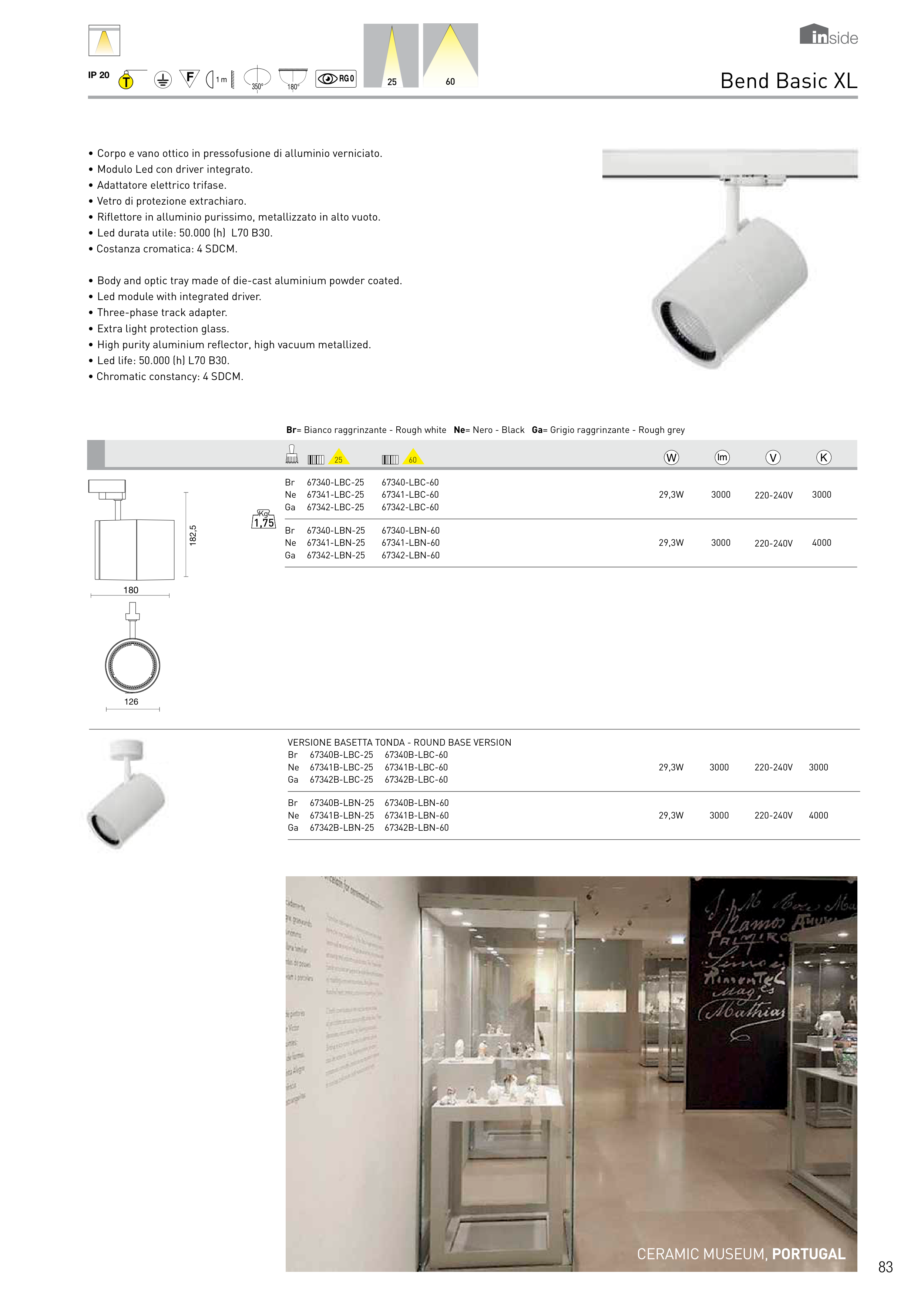 • Body and optic tray made of die-cast aluminium powder coated.