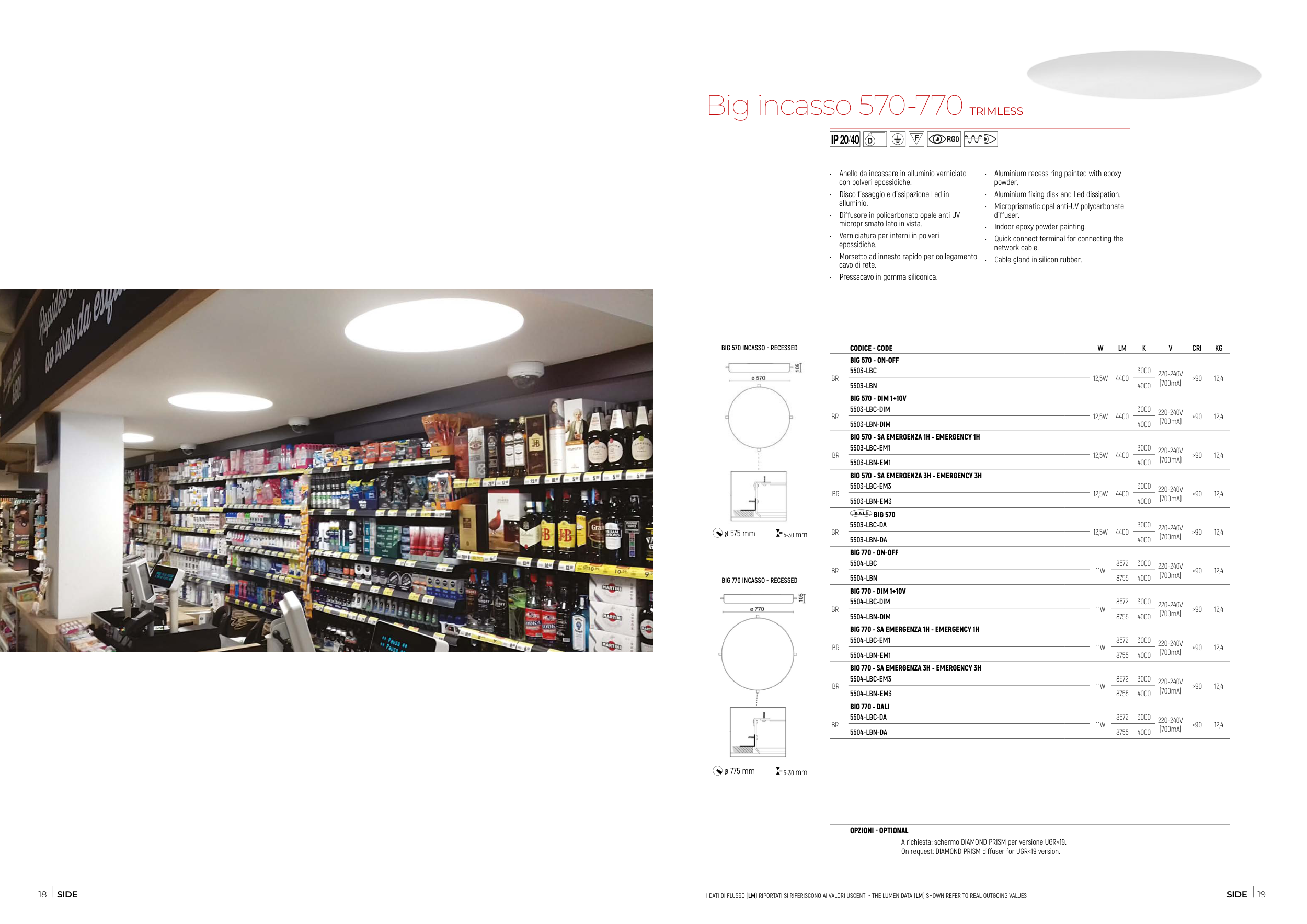 I DATI DI FLUSSO (LM) RIPORTATI SI RIFERISCONO AI VALORI USCENTI - THE LUMEN DATA (LM) SHOWN REFER TO REAL OUTGOING VALUES