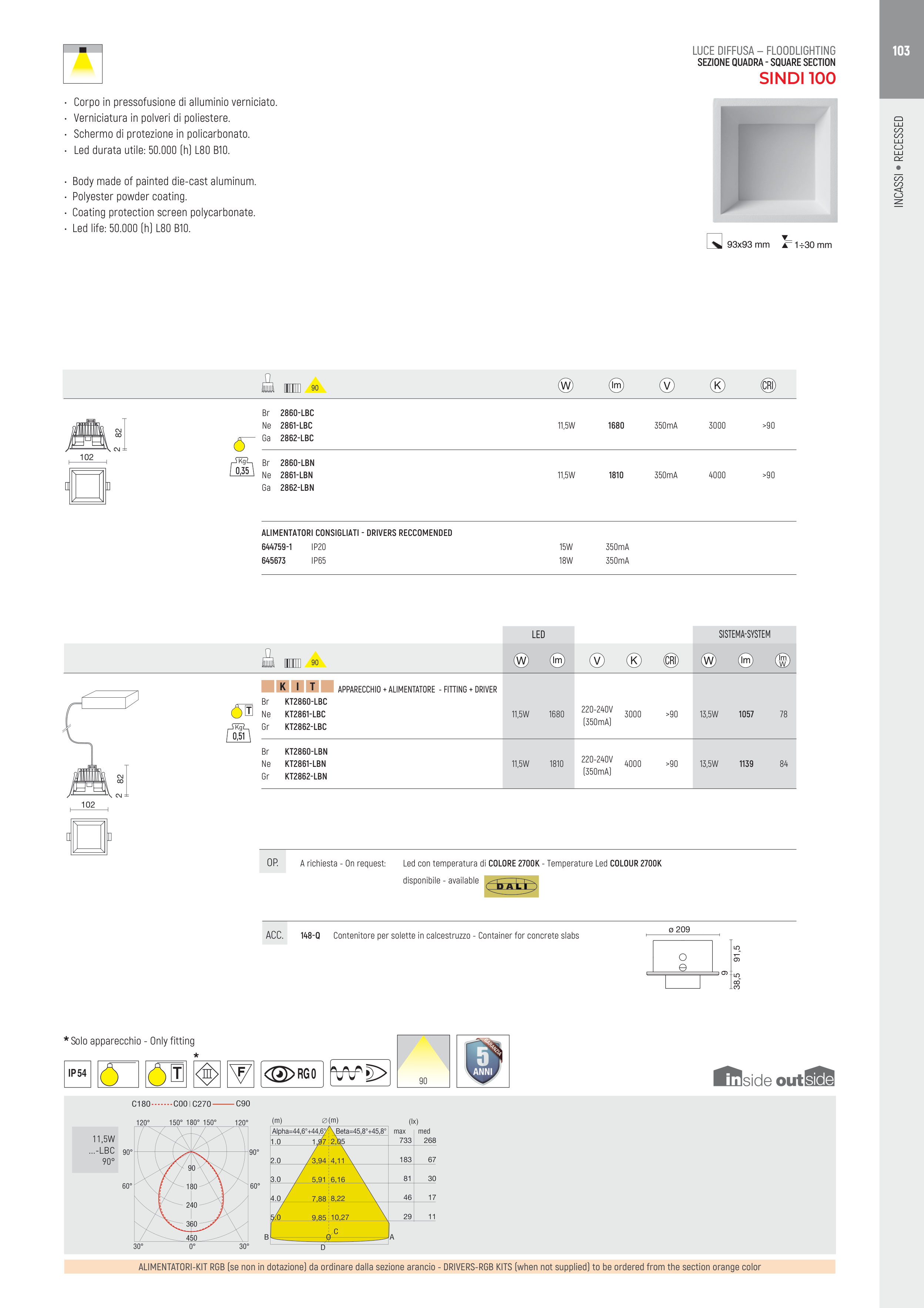 • Led durata utile: 50.000 (h) L80 B10.