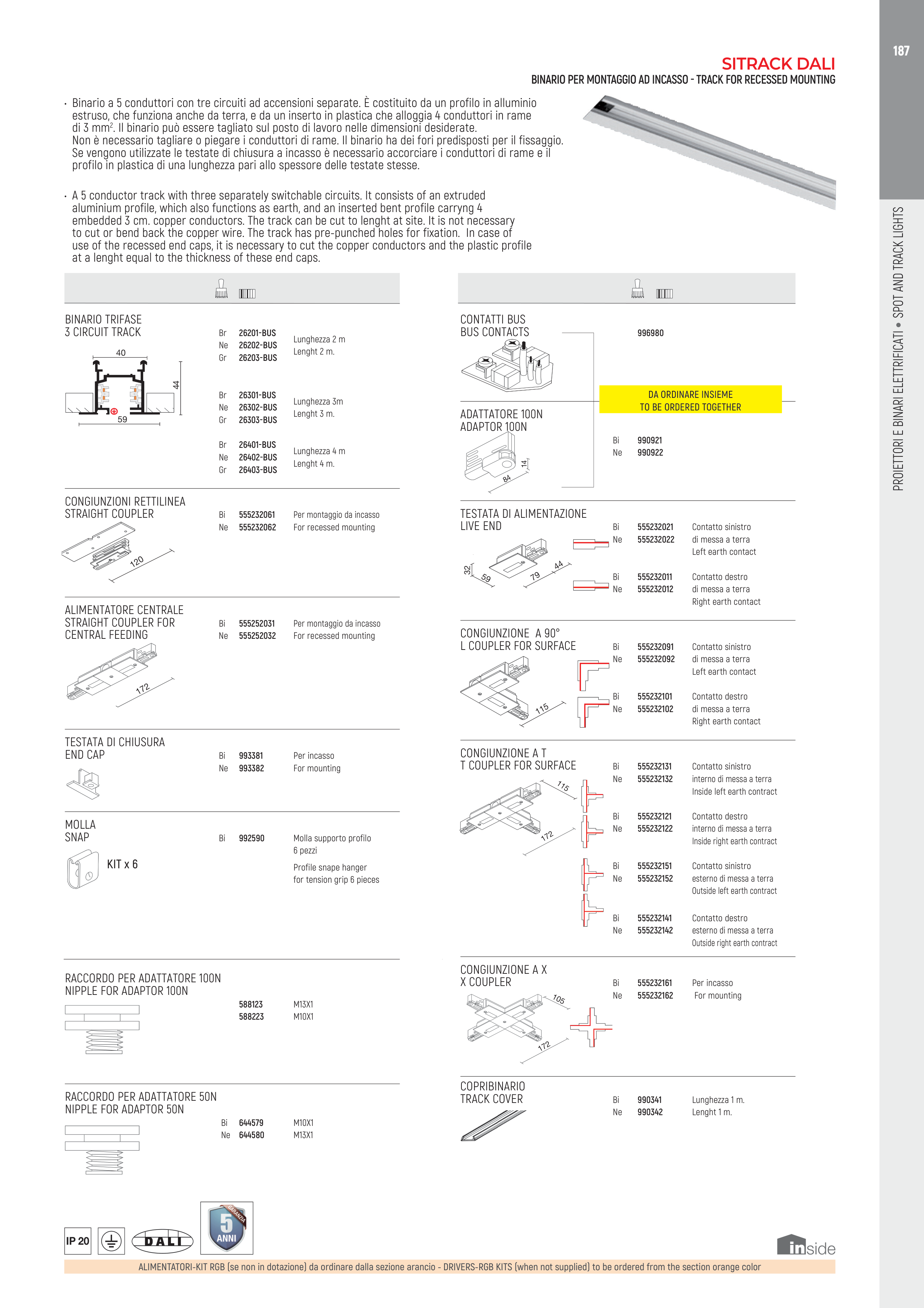 BINARIO PER MONTAGGIO AD INCASSO - TRACK FOR RECESSED MOUNTING