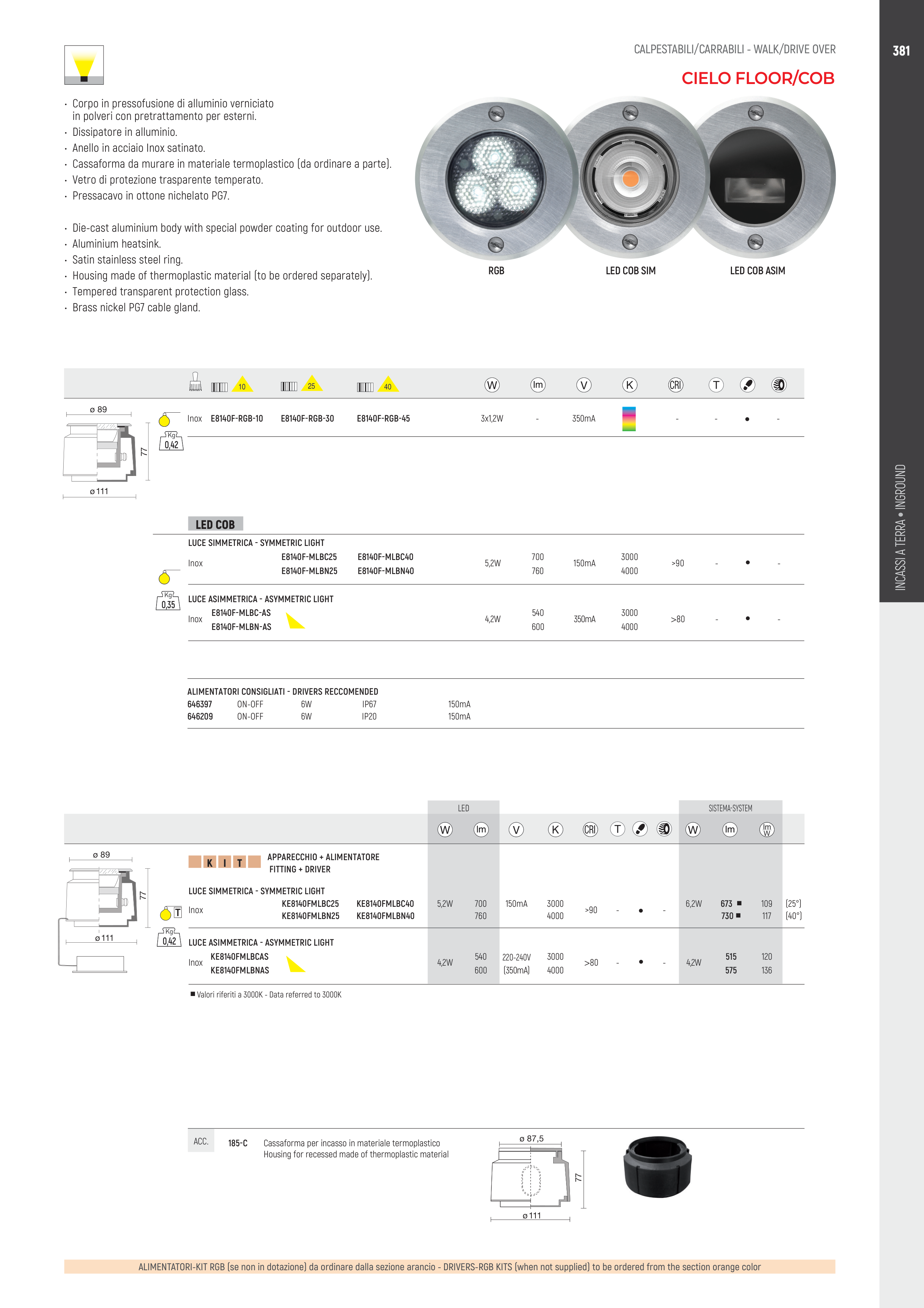 ALIMENTATORI-KIT RGB (se non in dotazione) da ordinare dalla sezione arancio - DRIVERS-RGB KITS (when not supplied) to be ordered from the section orange color